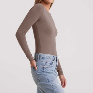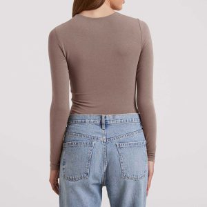 Categories: All Products, Bodysuits, Cotton Stretch, Fall2024, Instock, long sleeve bodysuits, long sleeves, Mocha, Sale, Shop All, Tops, valentines, Women's