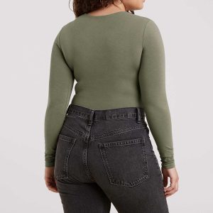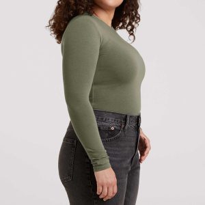 Categories: All Products, Bodysuits, Cotton Stretch, Dark Olive, Fall2024, Instock, long sleeve bodysuits, long sleeves, Olive, Sale, Shop All, Tops, valentines, Women's