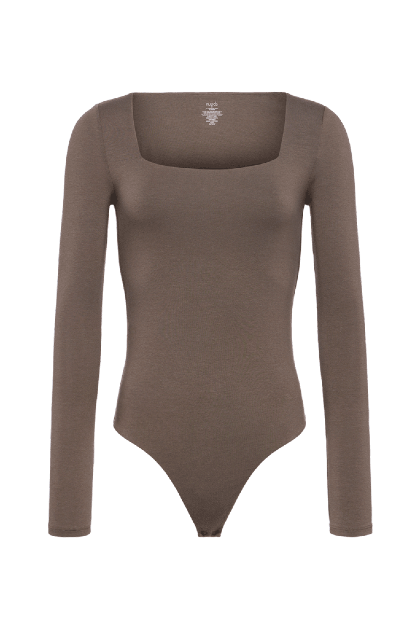 Cotton Stretch Long Sleeve Square Neck Bodysuit | Mocha