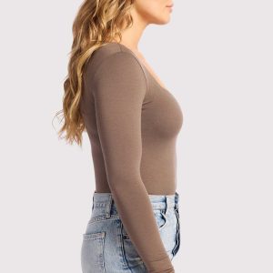 Categories: All Products, Bodysuits, Cotton Stretch, Fall2024, Instock, long sleeve bodysuits, long sleeves, Mocha, Shop All, sizebroken, Tops, Women's