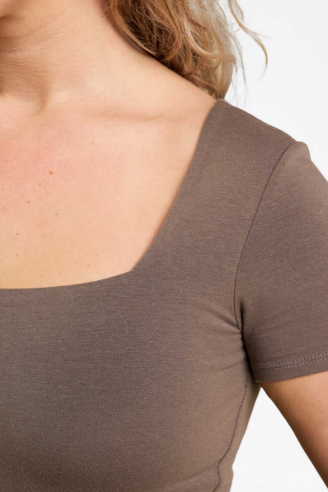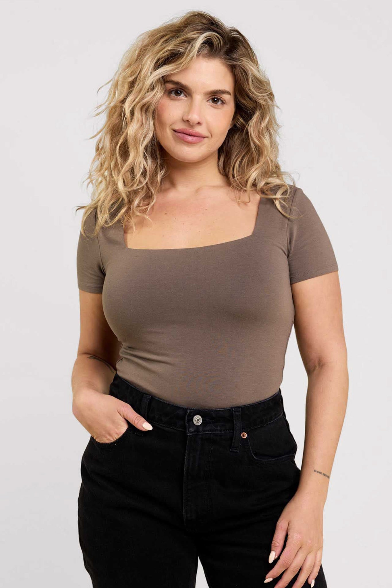 Cotton Stretch Short Sleeve Square Neck Bodysuit | Mocha