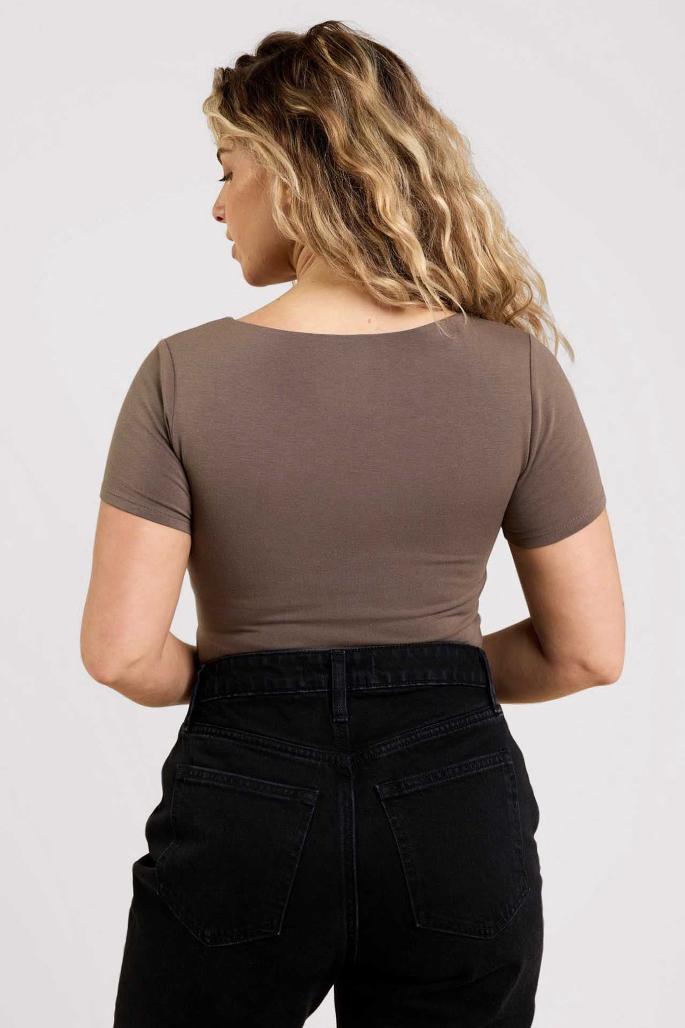 Categories: All Products, Bodysuits, Cotton Stretch, Instock, Mocha, Sale, Shop All, short sleeve, Summer2025, tees and tanks, Tops, Women's