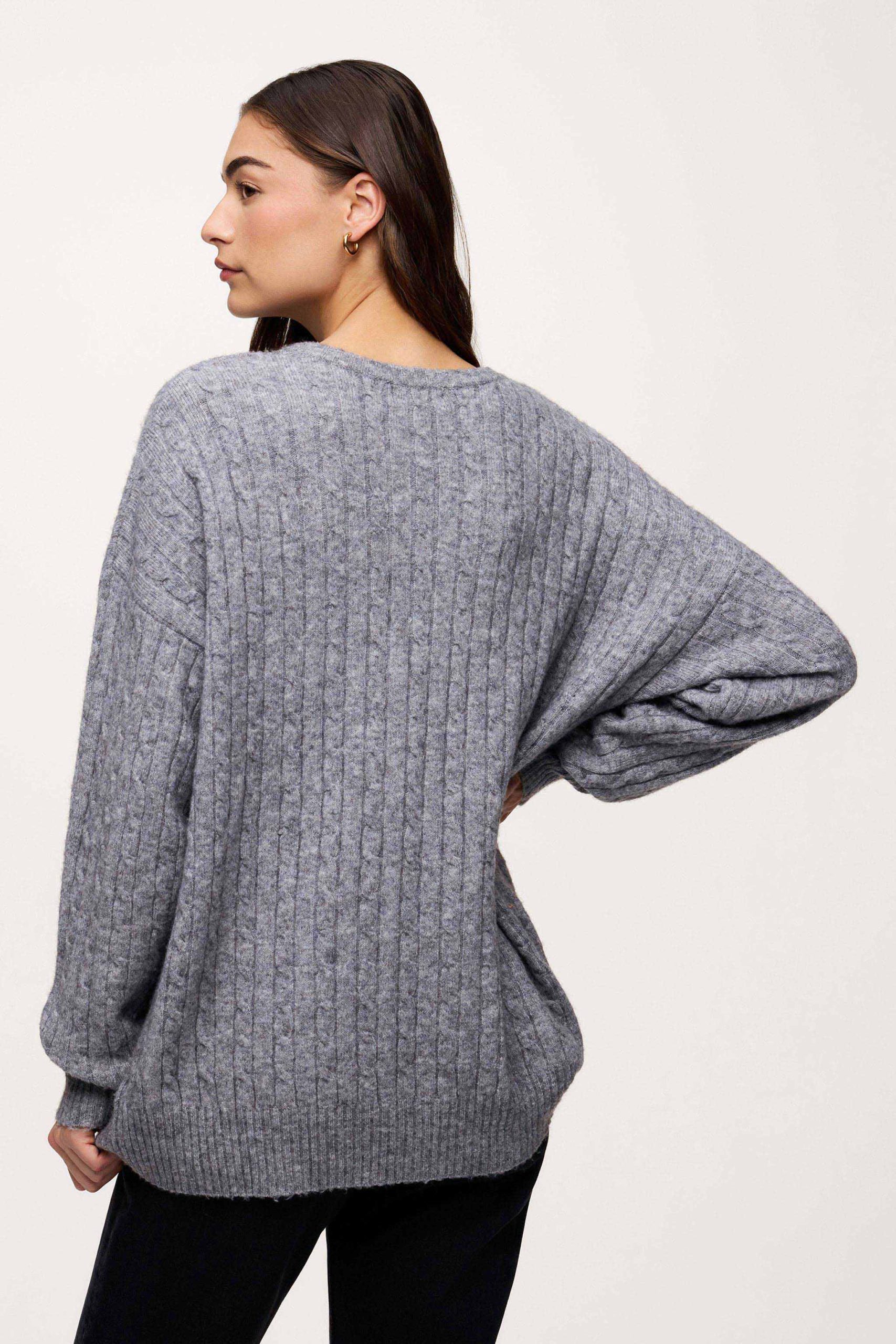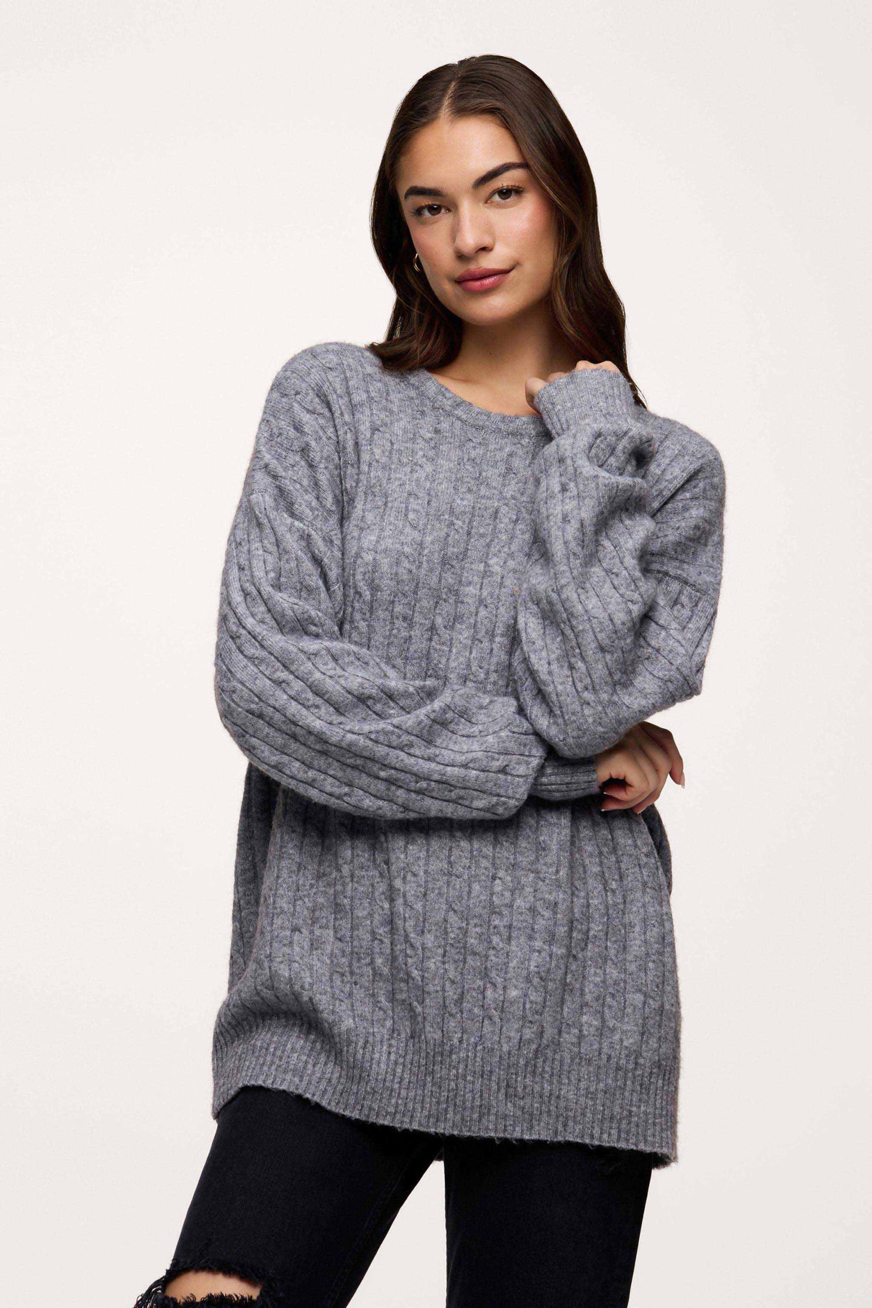 Cozy Knit Cable Crewneck Sweater | Charcoal