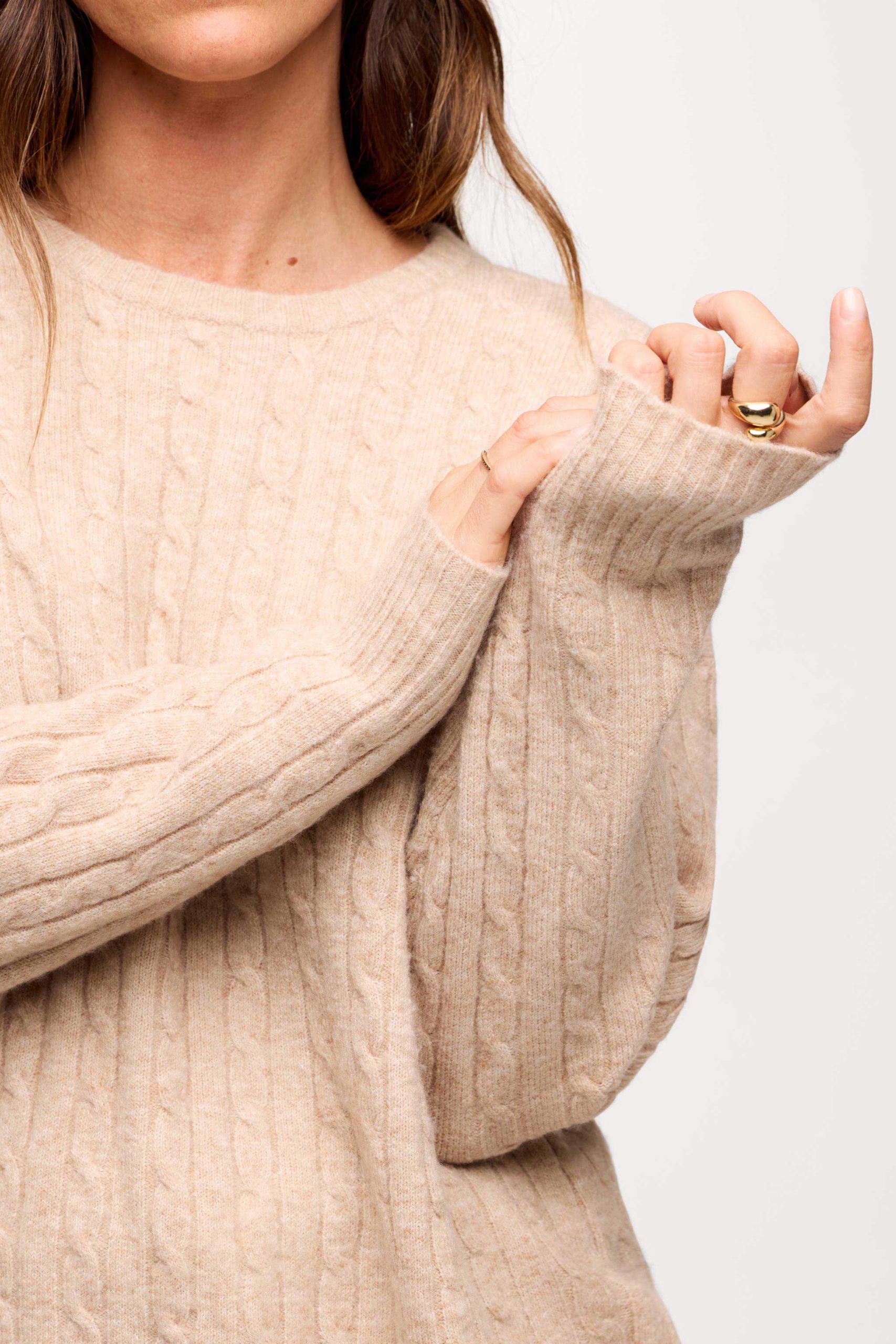 Cozy Knit Cable Crewneck Sweater | Heather Oat