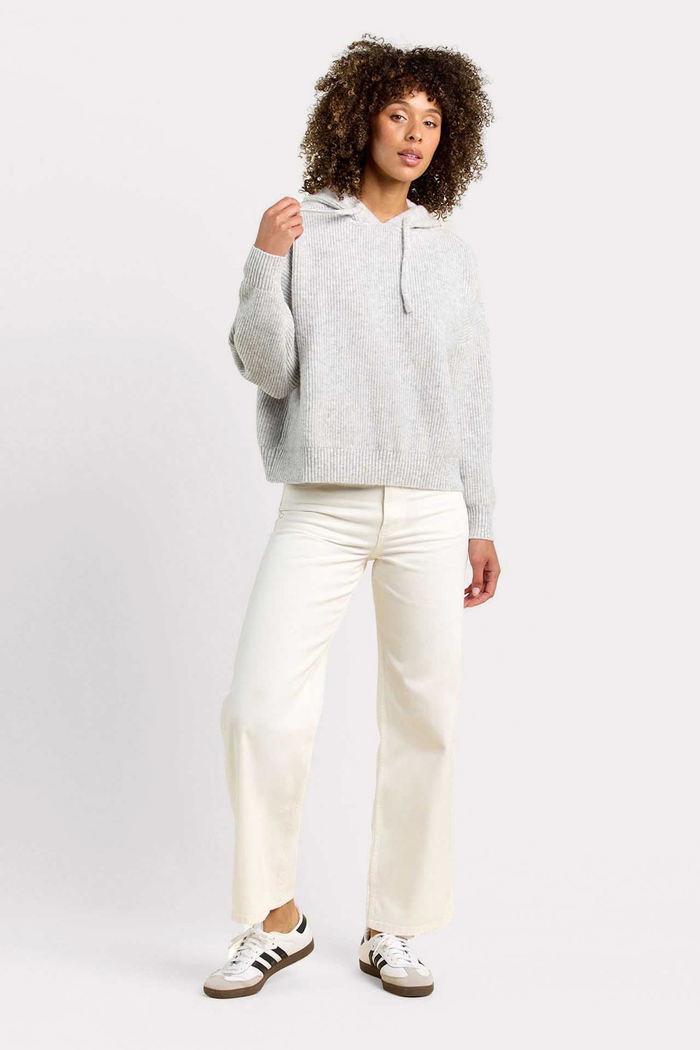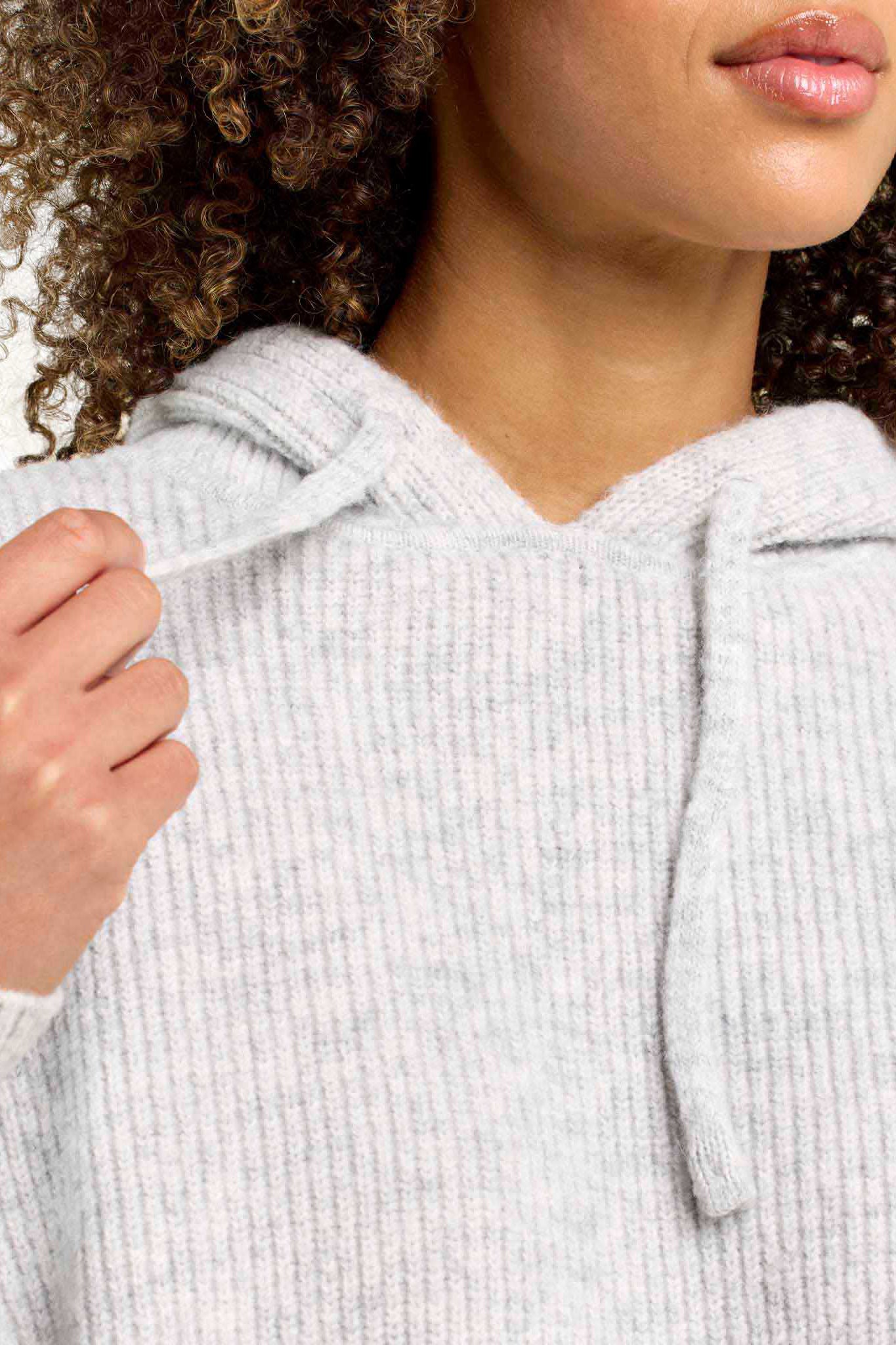 Cozy Knit Ribbed Sweater Hoodie | Heather Grey