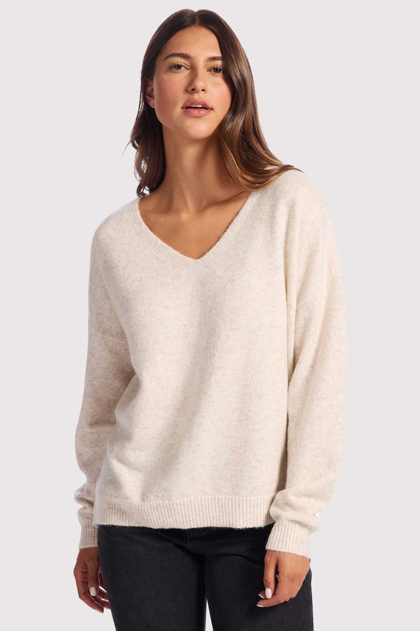 Cozy Knit V-Neck Sweater | Heather Bone