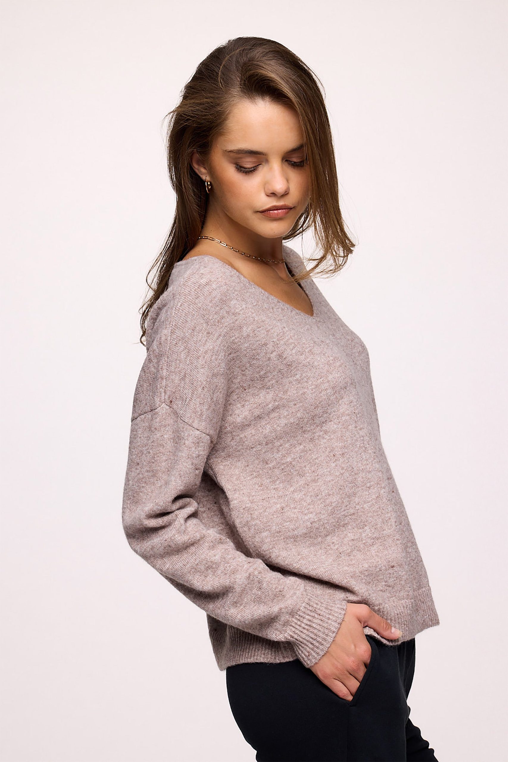 Cozy Knit V-Neck Sweater | Heather Cocoa