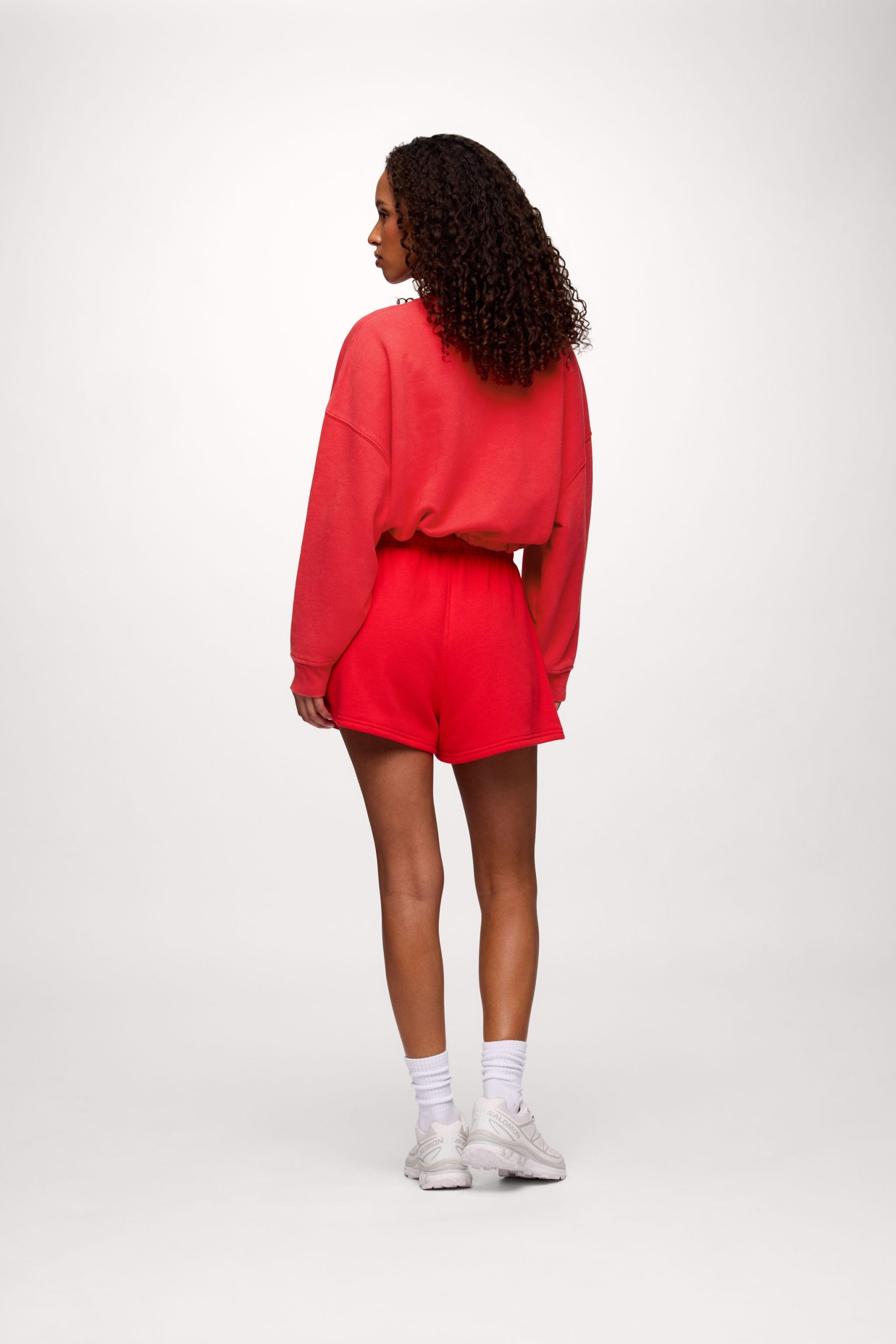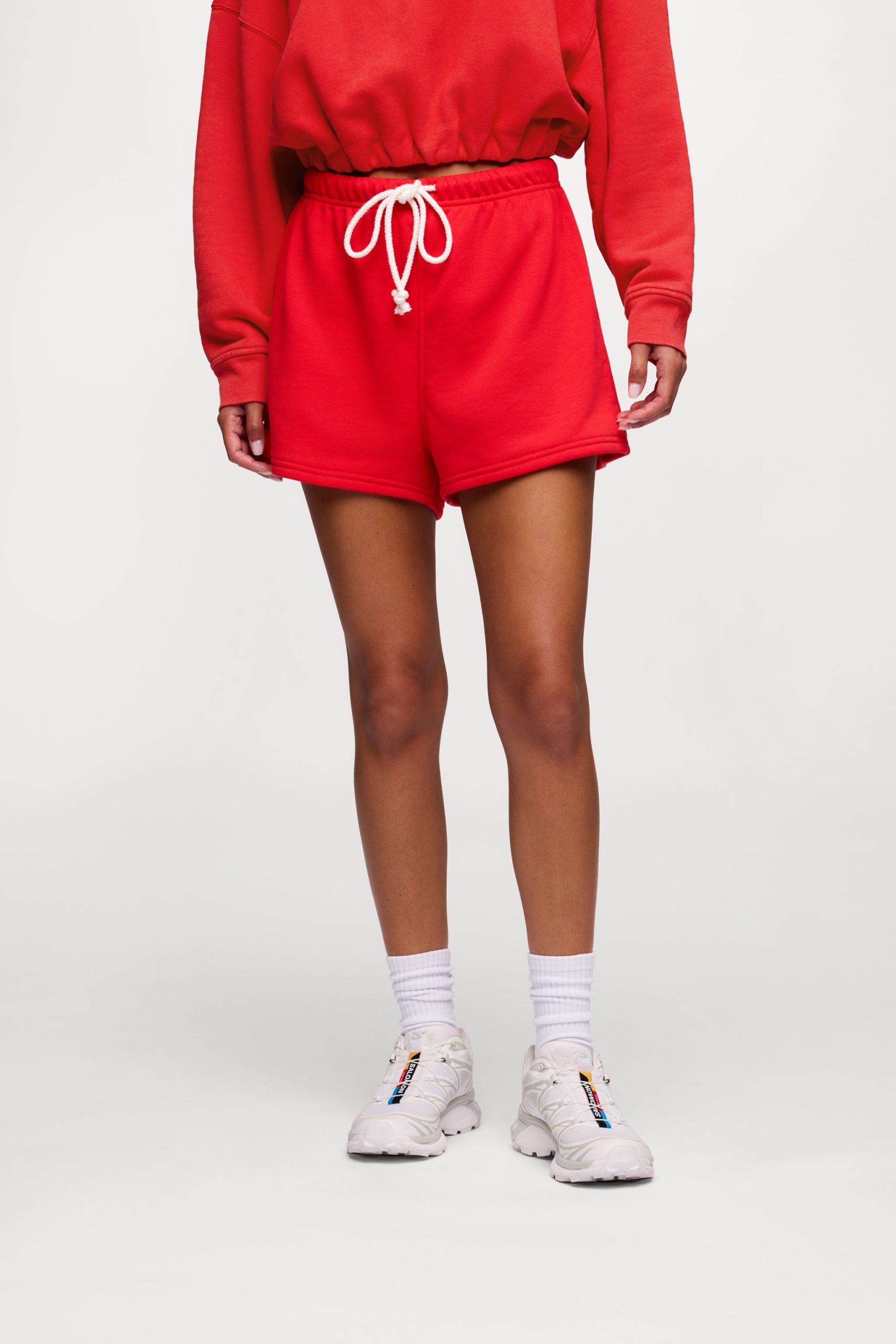 The sweat shorts you’ll live in. Made from soft, worn-in French terry, they’re easy, comfortable, and not too thick. The A-line fit won’t squeeze your thighs, and the length gives you the coverage you actually want for real life. The easiest outfit maker — just pair it with a tank, tee, or the matching sweatshirt.