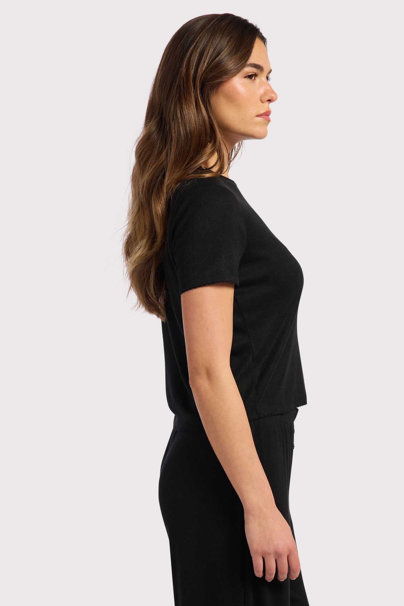 Heart Pointelle Pajama Tee | Black