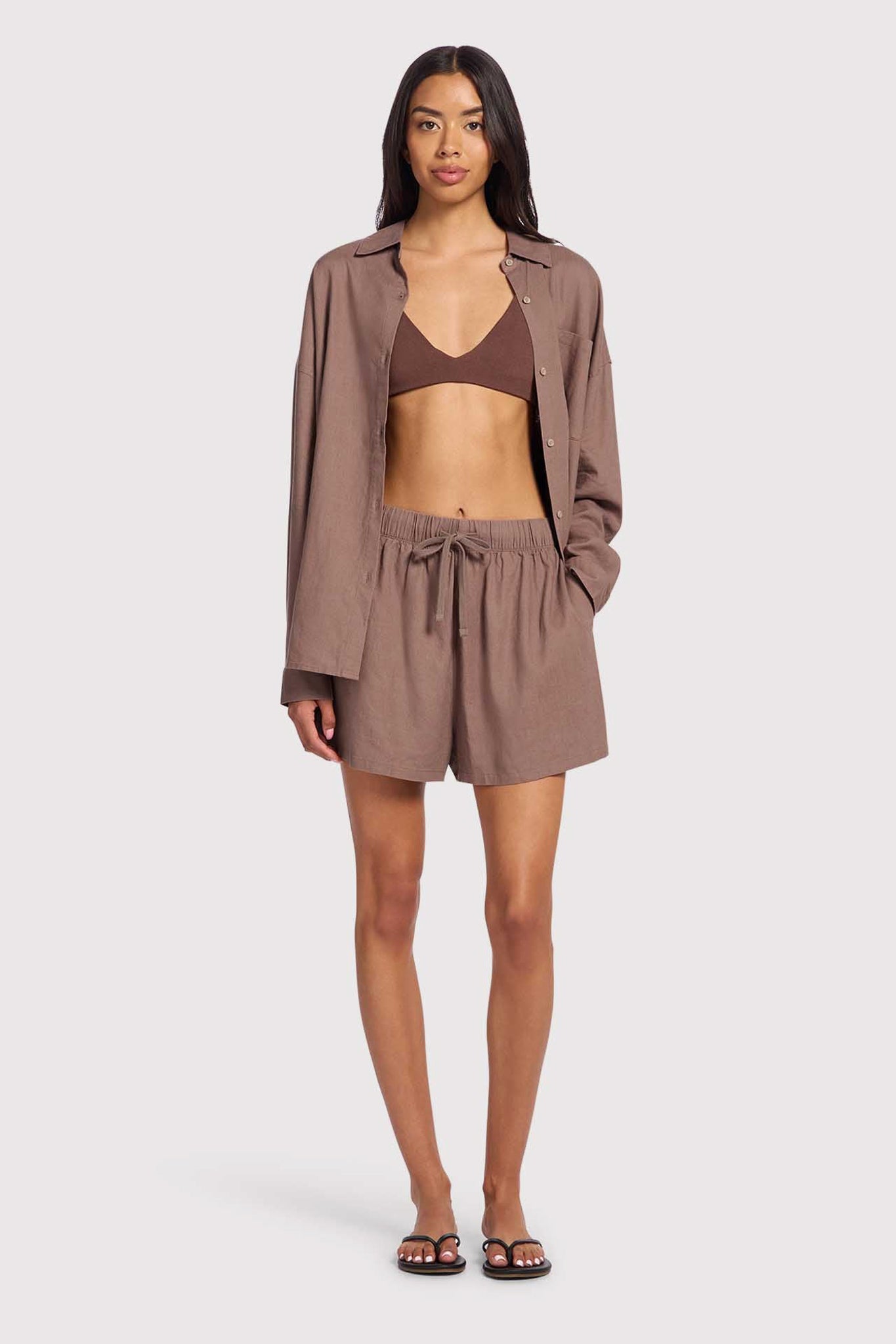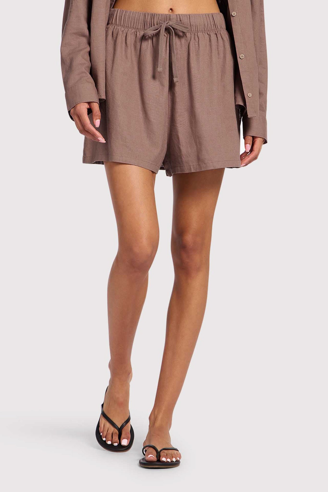 The Linen Beach Short is designed for effortless warm-weather dressing with a relaxed, airy feel. Made from a breathable linen blend, these high waist shorts feature an adjustable drawcord waistband for a customizable fit and easy pull-on comfort. The lightweight fabric drapes naturally, making them ideal for beach days, casual outings, or laid-back summer styling. Easy to pair with the matching Linen Boyfriend Shirt or everyday essentials, these linen shorts are a go-to staple for staying cool and comfortable all season long.