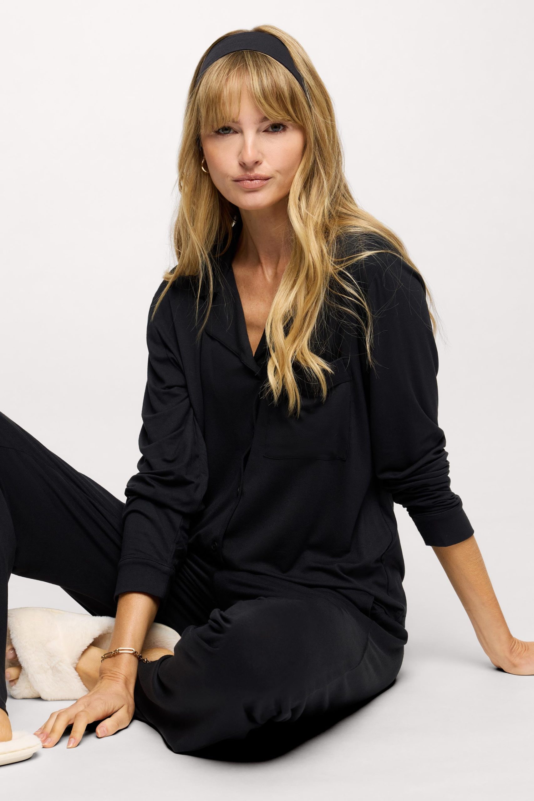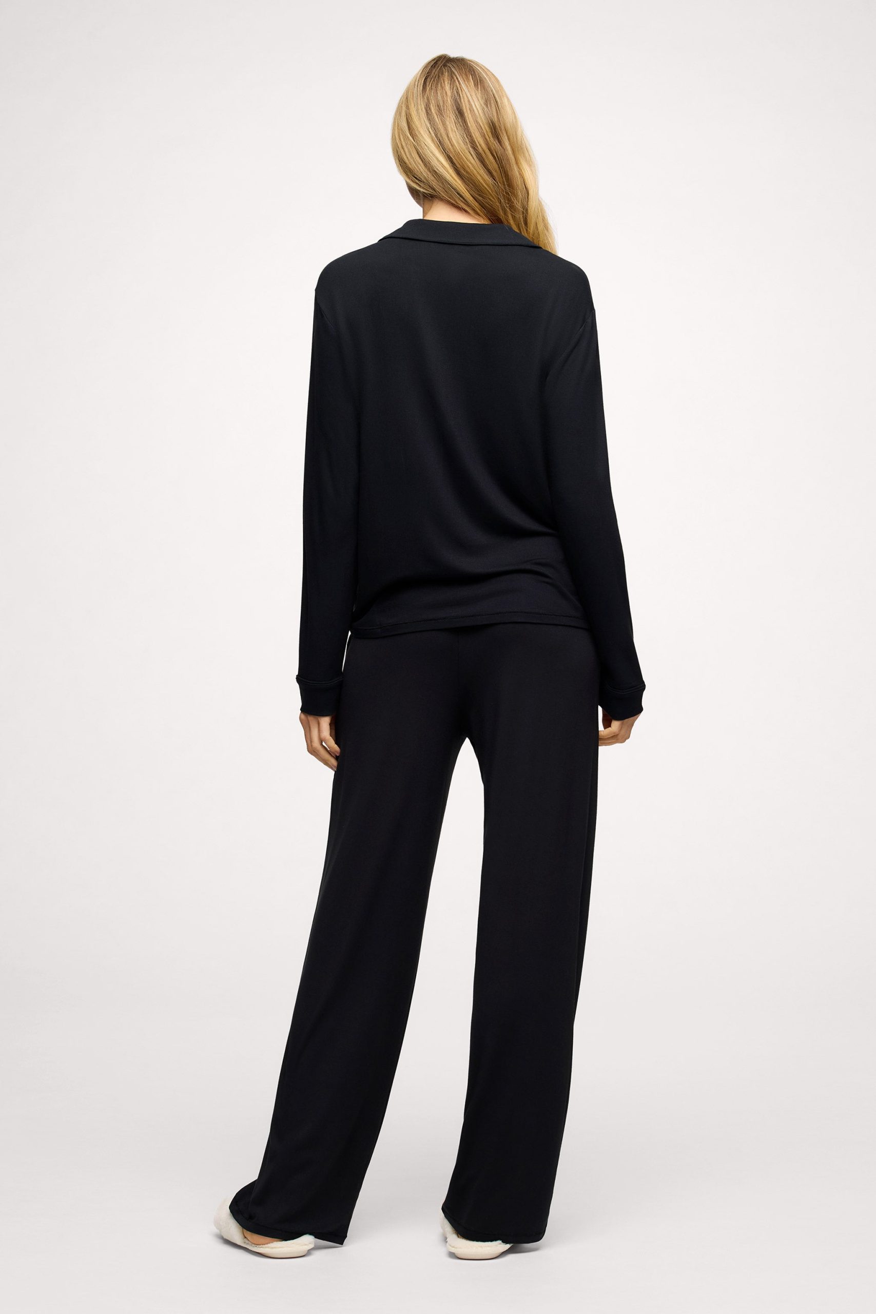 Long Sleeve Button-Up Pajama Shirt | Black
