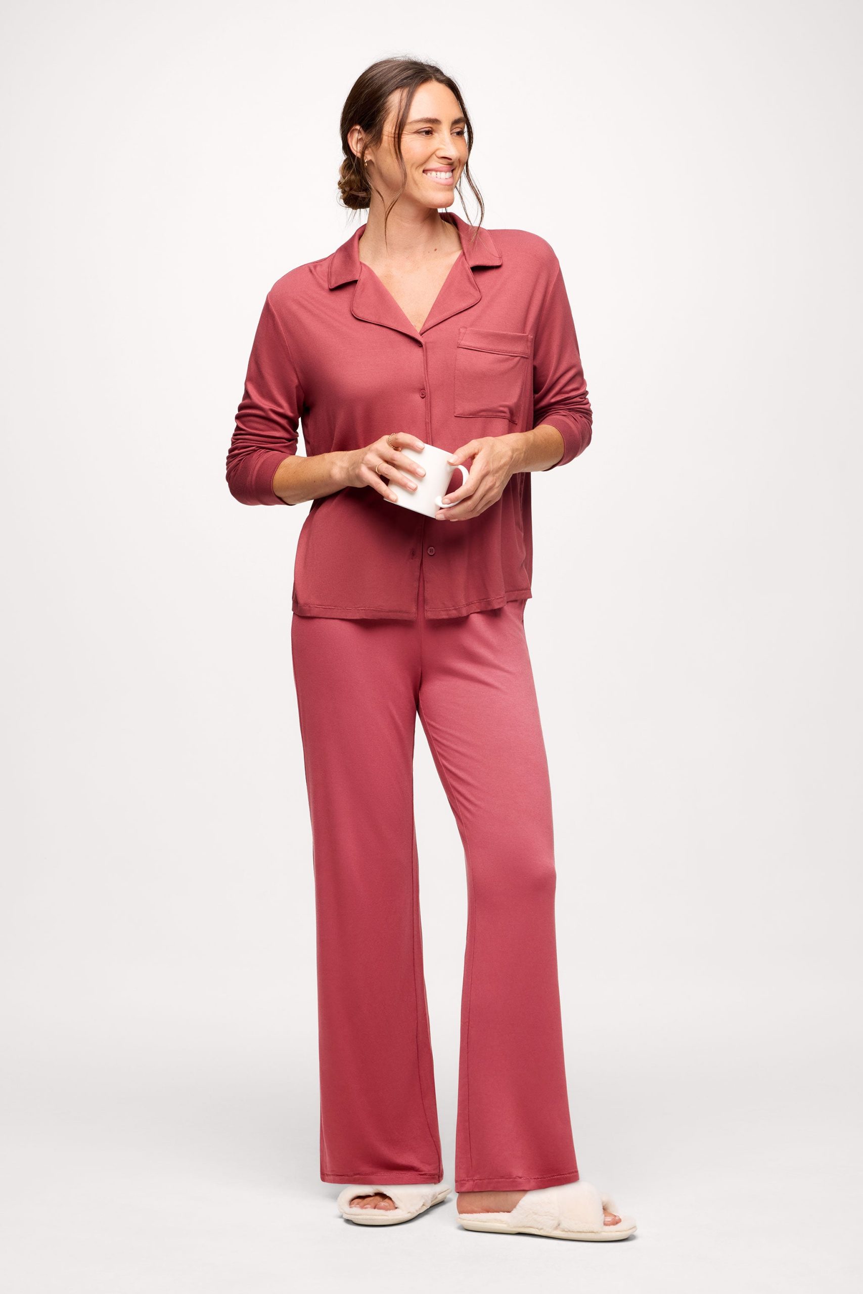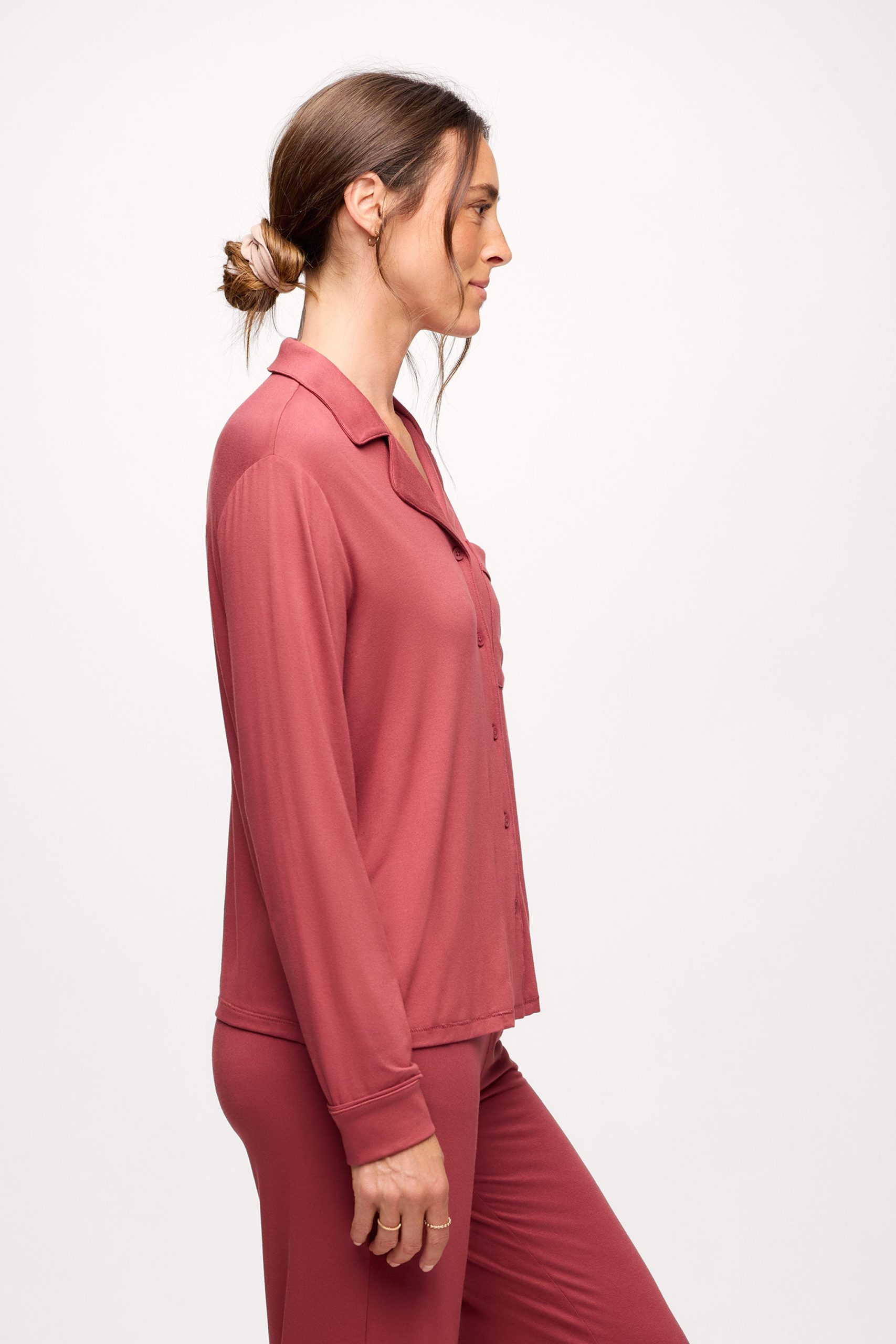 Long Sleeve Button-Up Pajama Shirt | Mauve