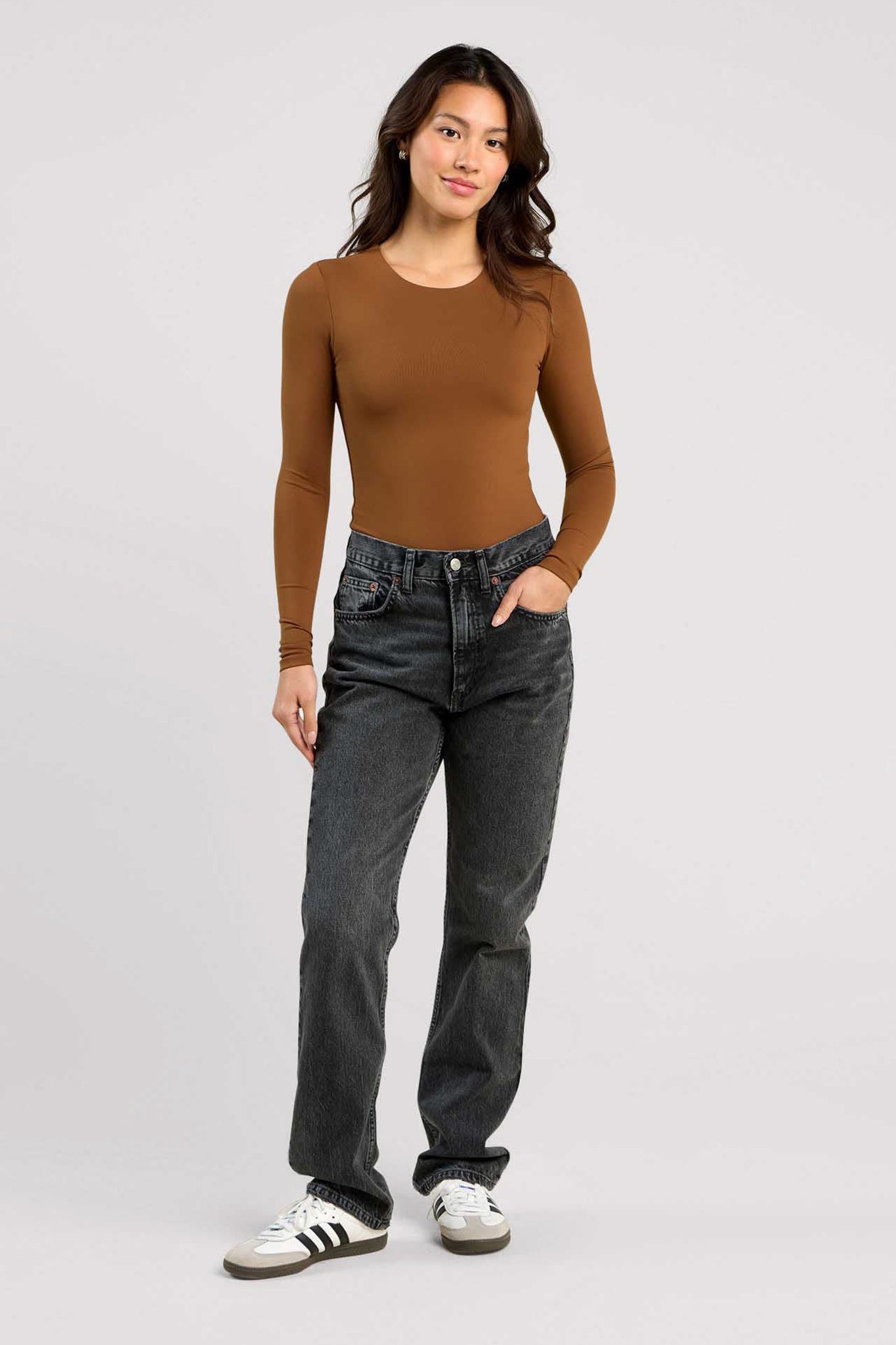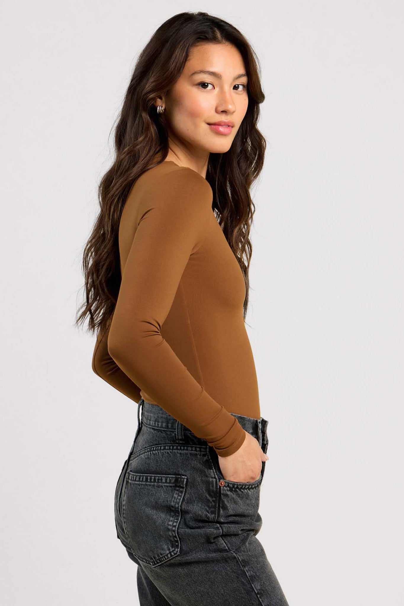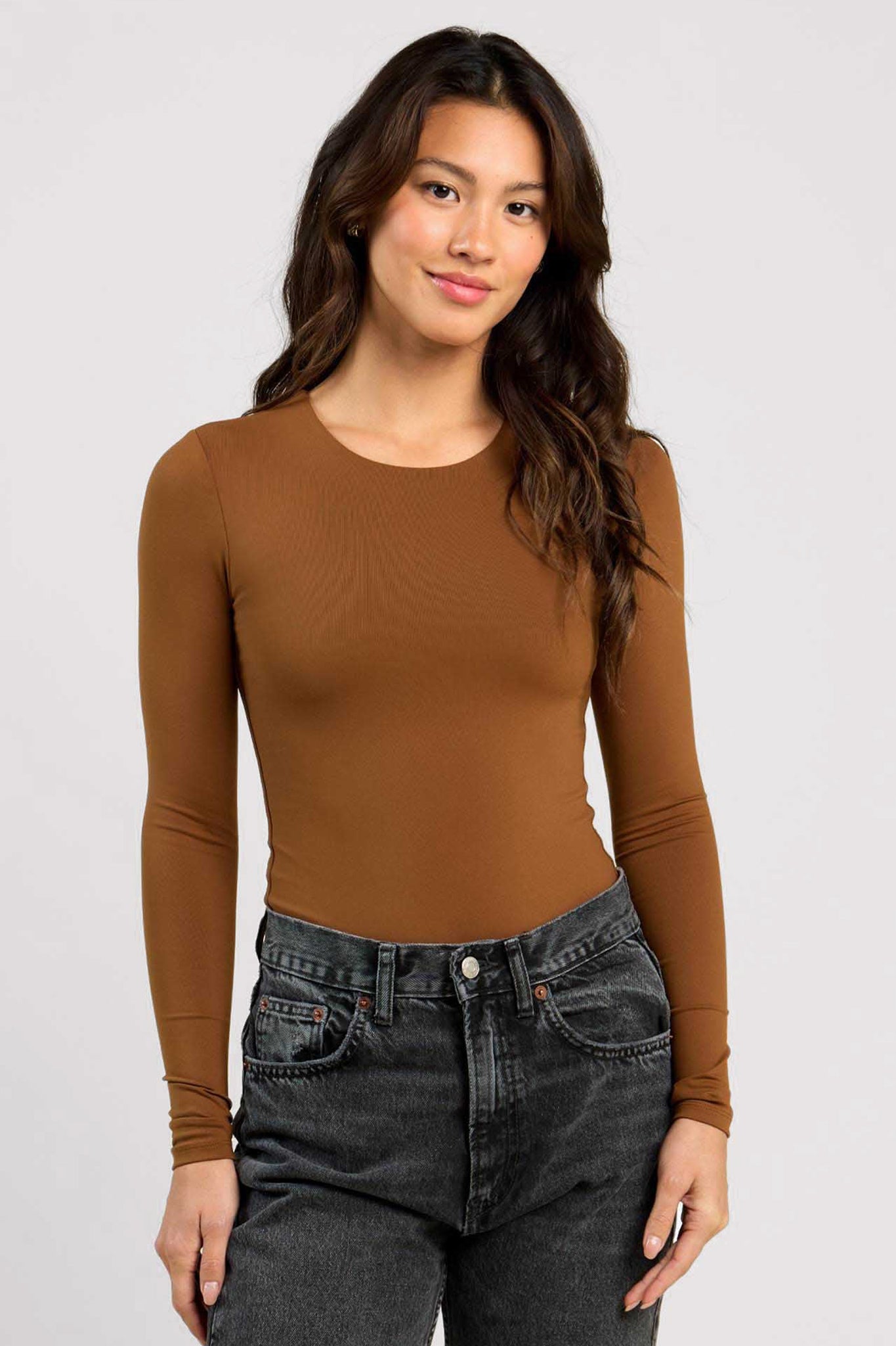 Long Sleeve Crewneck Bodysuit | Chocolate