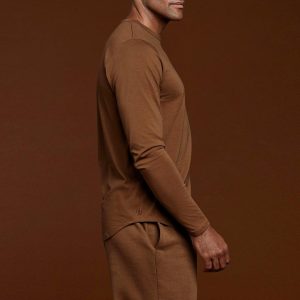 Long Sleeve Curved Hem T-Shirt | Chocolate