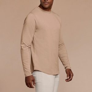 Long Sleeve Curved Hem T-Shirt | Sand