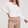 Long Sleeve Ribbed Crewneck Bodysuit | Sand