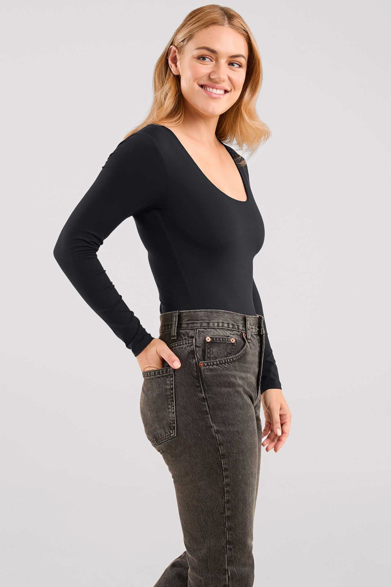 Be the first to review “Long Sleeve Scoop Neck Bodysuit | Black” Cancel reply