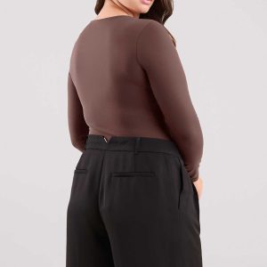 Long Sleeve Scoop Neck Bodysuit | Coffee