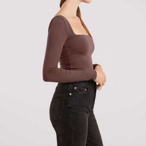 Long Sleeve Wide Square Neck Bodysuit | Coffee
