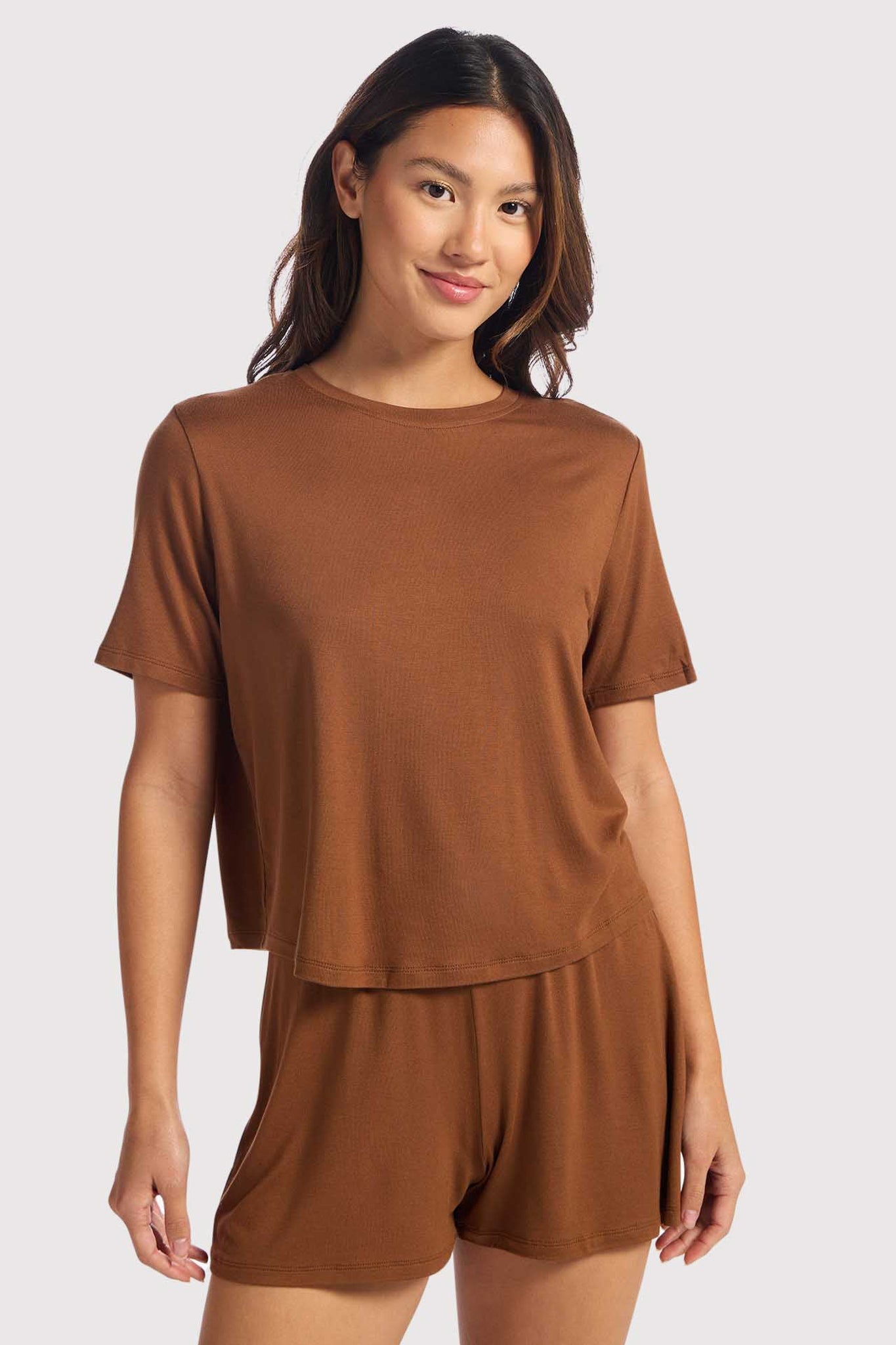Feel nuud in our cooling pajama top and short set. Curated with your comfort in mind, this breezy set is modest enough to be worn around the house (no matter who’s home) but short enough to feel modern.