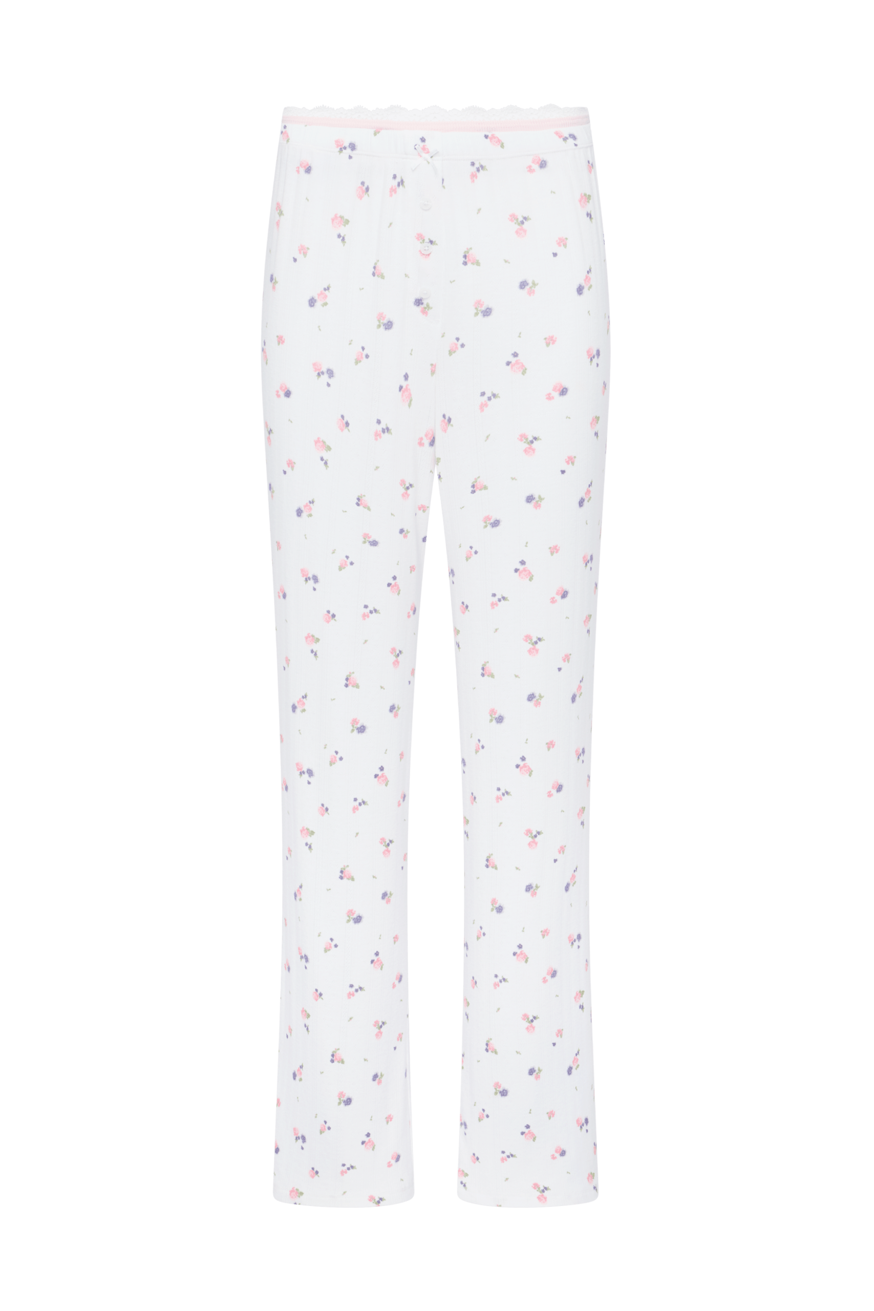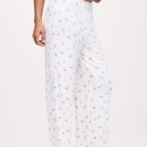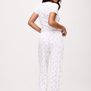 A relaxed wide-leg pant with thoughtful details that feel easy and feminine. Soft and lightweight with a ditsy floral pattern, it features a comfortable double waistband with delicate lace trim for a smooth, flattering fit. Designed to complement the Sweetheart Pajama Tee, it creates a cohesive, polished set when worn together.