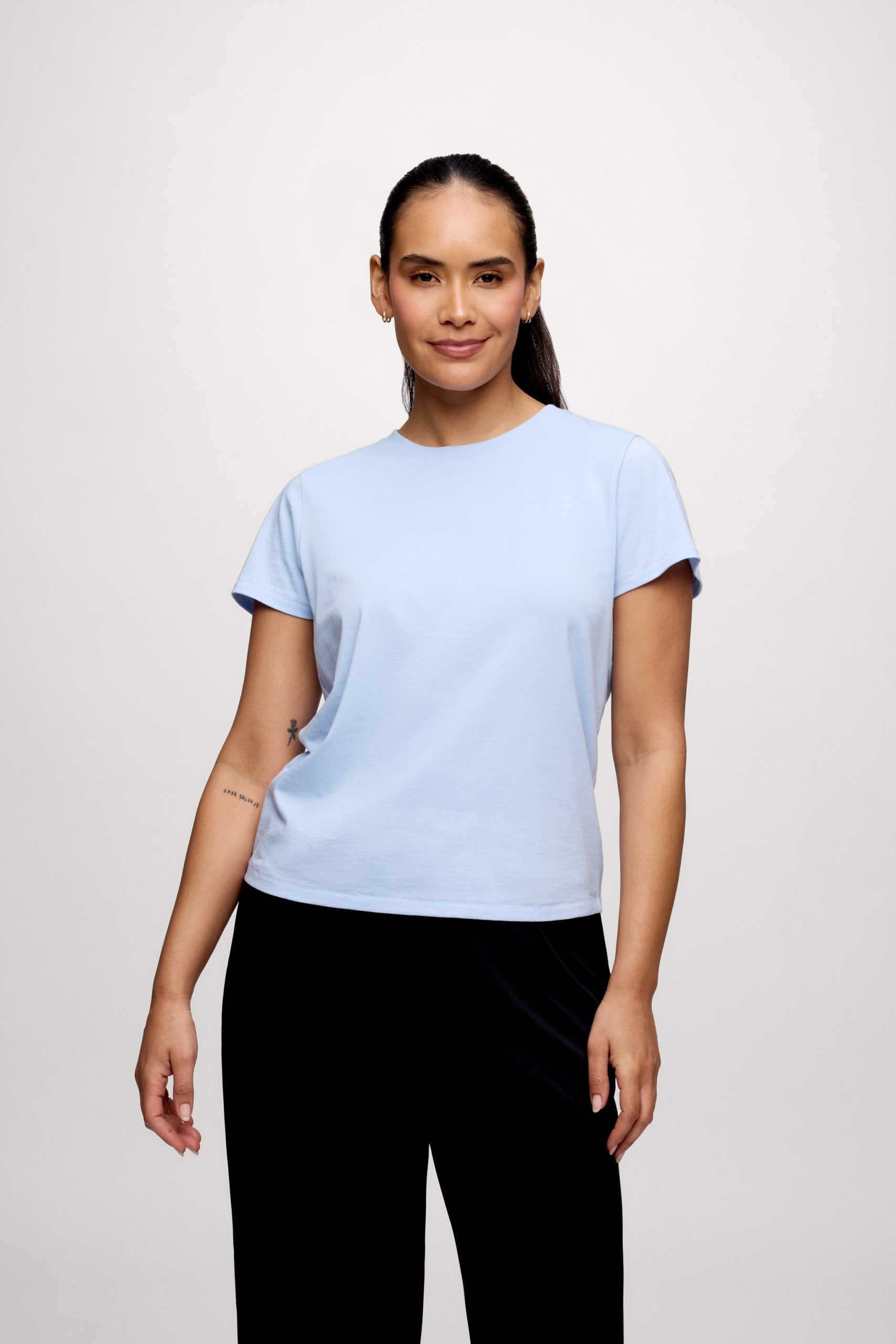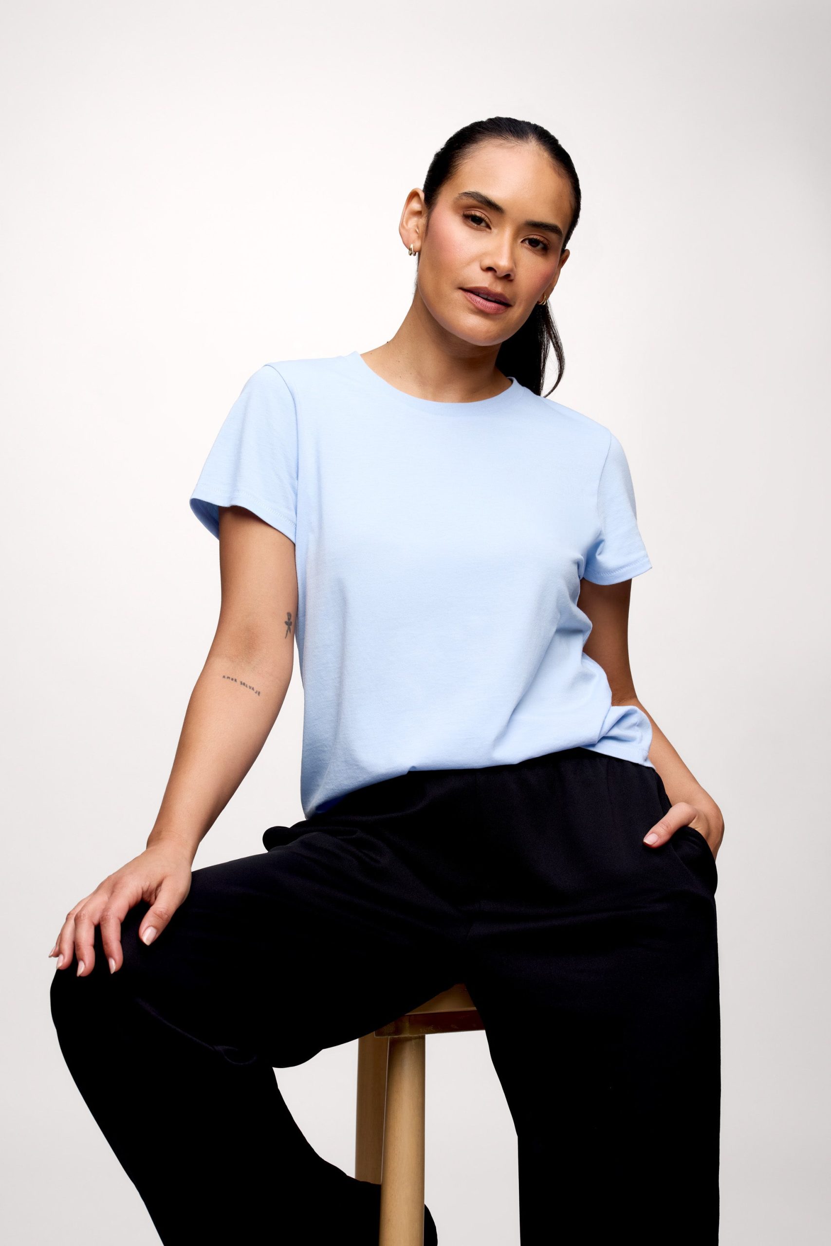 Soft, easy, and endlessly wearable — the Perfect Tee is the kind of everyday basic you’ll reach for again and again. Made from a breathable cotton-modal blend, this women’s tee has a smooth, lightweight feel with a classic fit that drapes without clinging. It’s the elevated staple that pairs effortlessly with your favorite denim, trousers, or any of your nuuds essentials.