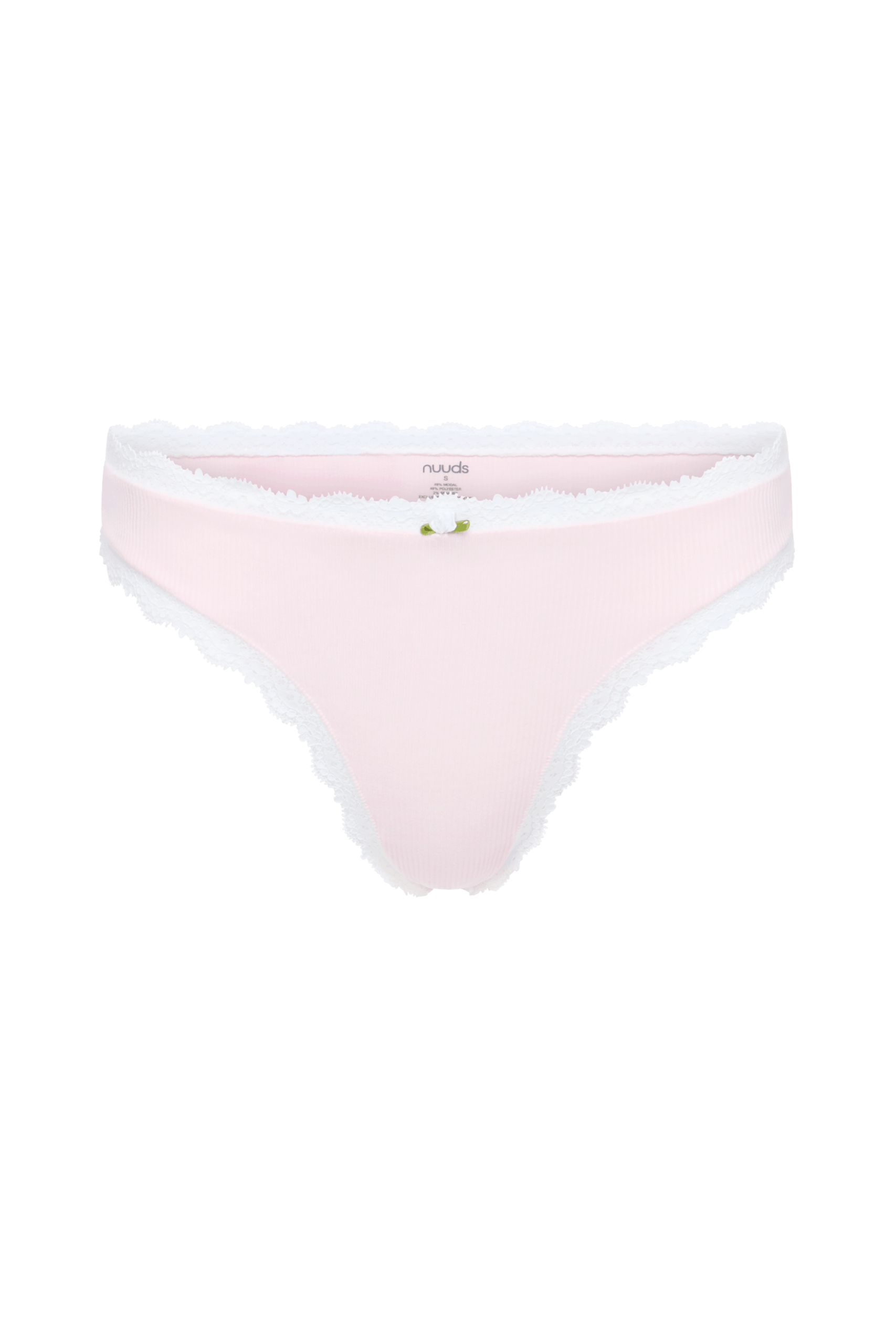 The Rose Thong is designed for a smooth, no-show fit under any outfit. Made from soft rib knit with lace at the waist and legs, it stretches comfortably without digging in and stays breathable where it counts. Finished with a small rose detail at the front, it’s an easy, everyday thong that stays in place.