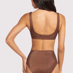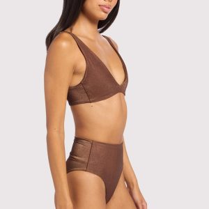 Shimmer Plunge Bikini Top | Coffee
