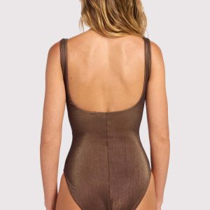 Shimmer Square Neck One Piece | Coffee
