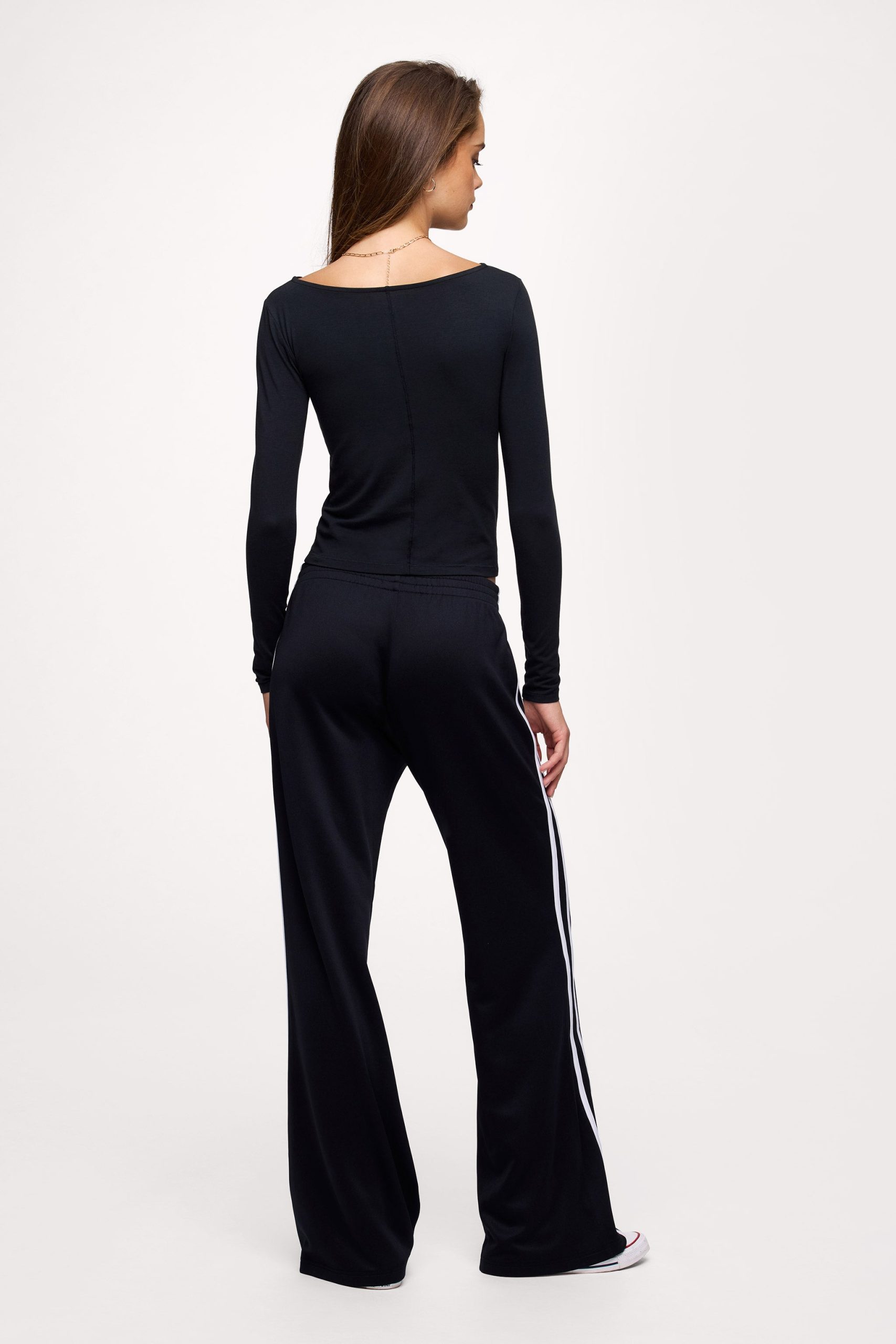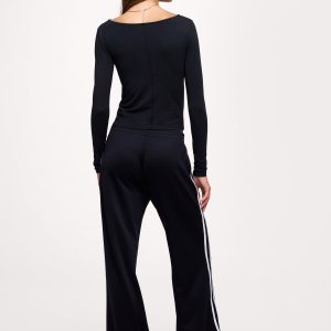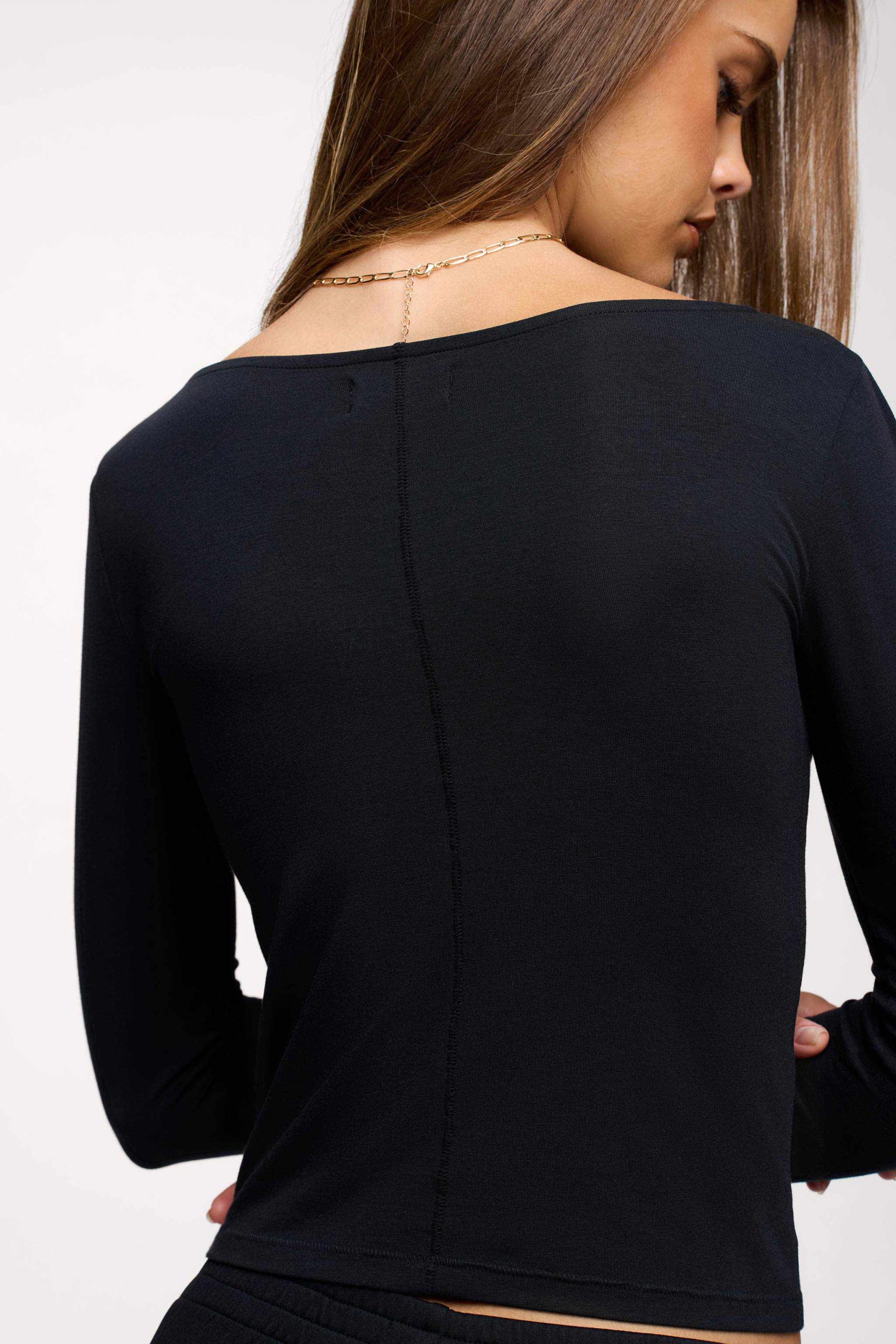 Slinky Jersey Boat Neck Long Sleeve Shirt | Black
