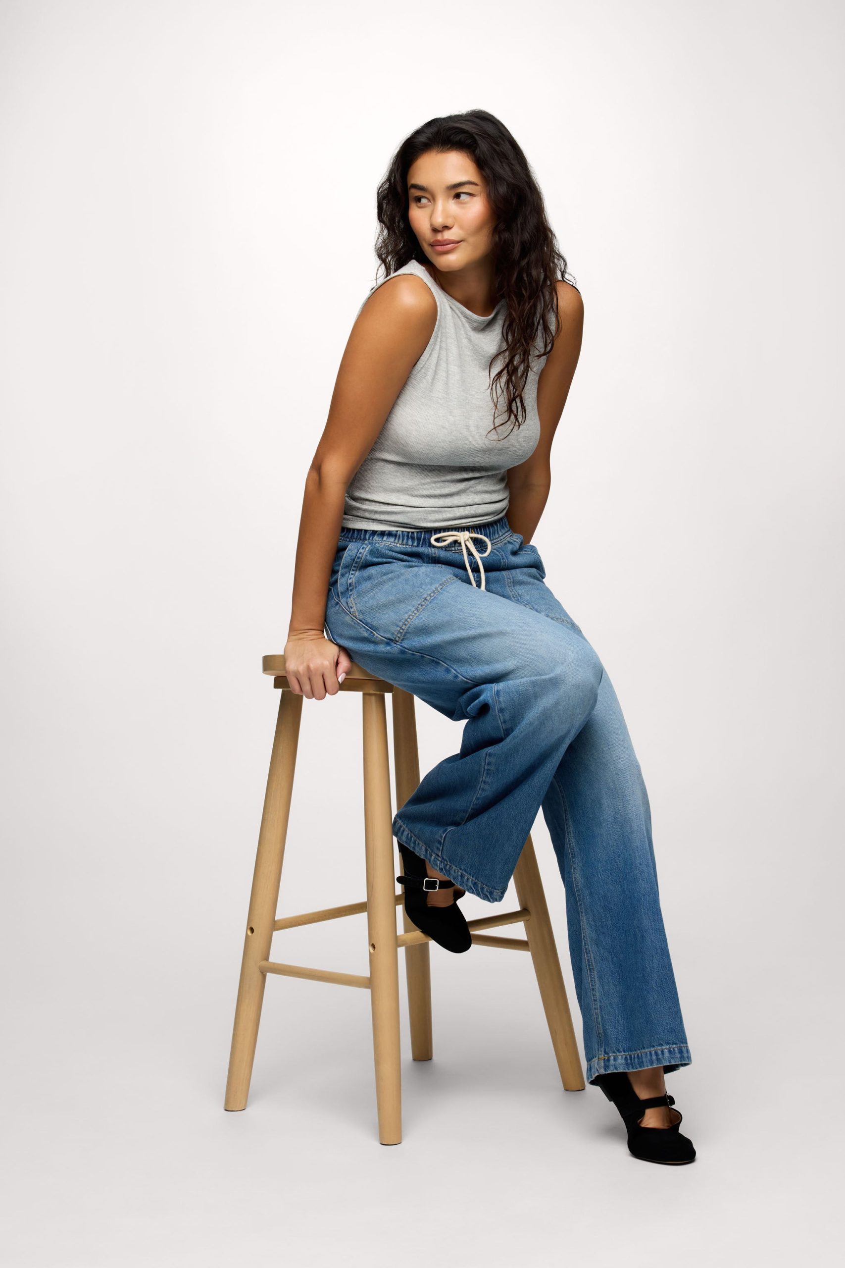 The Slinky Rib Boatneck Tank features a modern boat neckline and a sleeveless silhouette for an elevated, minimal look. Made from our stretch jersey Slinky Rib fabric, it skims the body with a soft stretch that holds its shape without clinging. Thoughtfully cut for extra side coverage (bye, armpit skin) and a bra-friendly fit so you can wear it how you actually live.