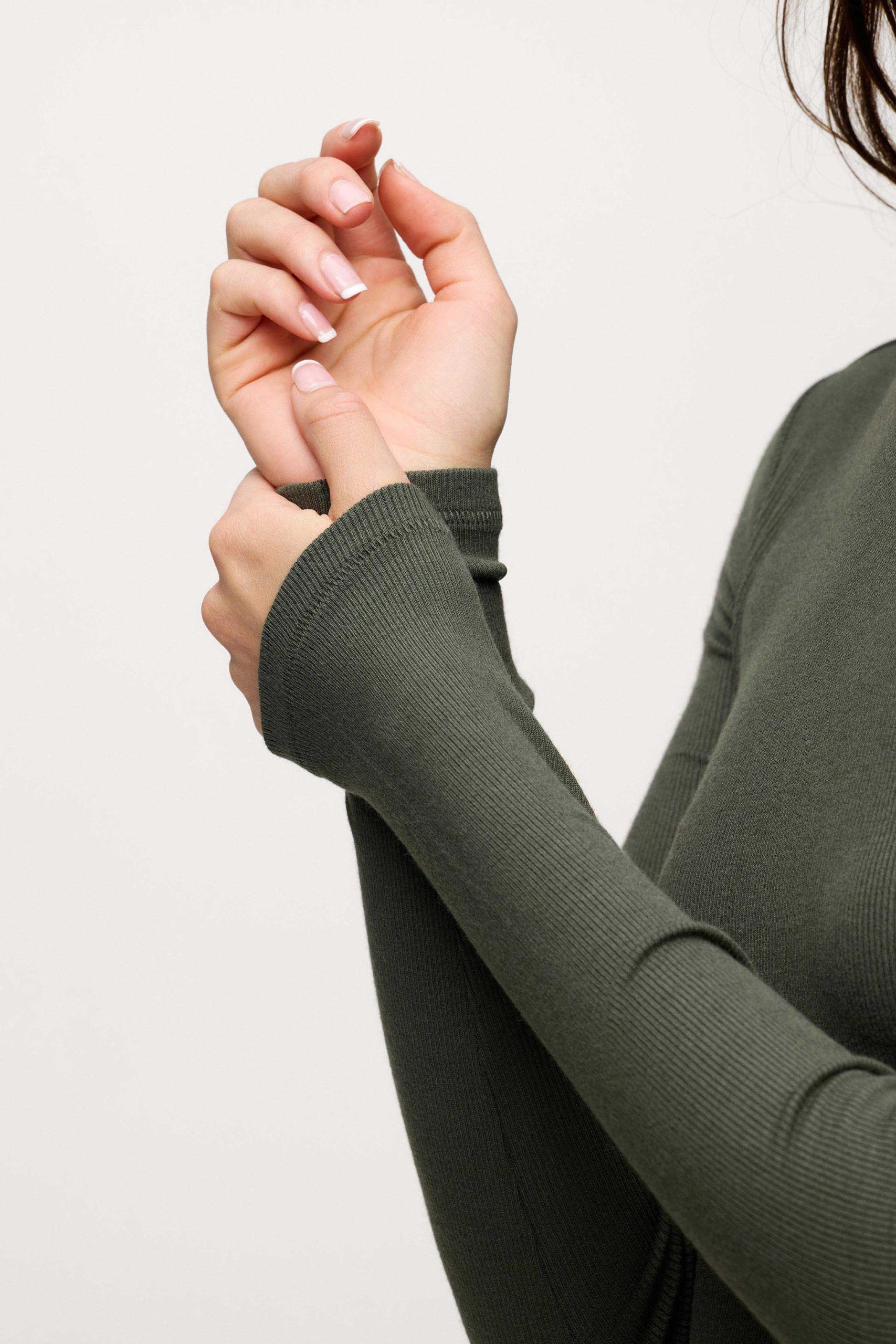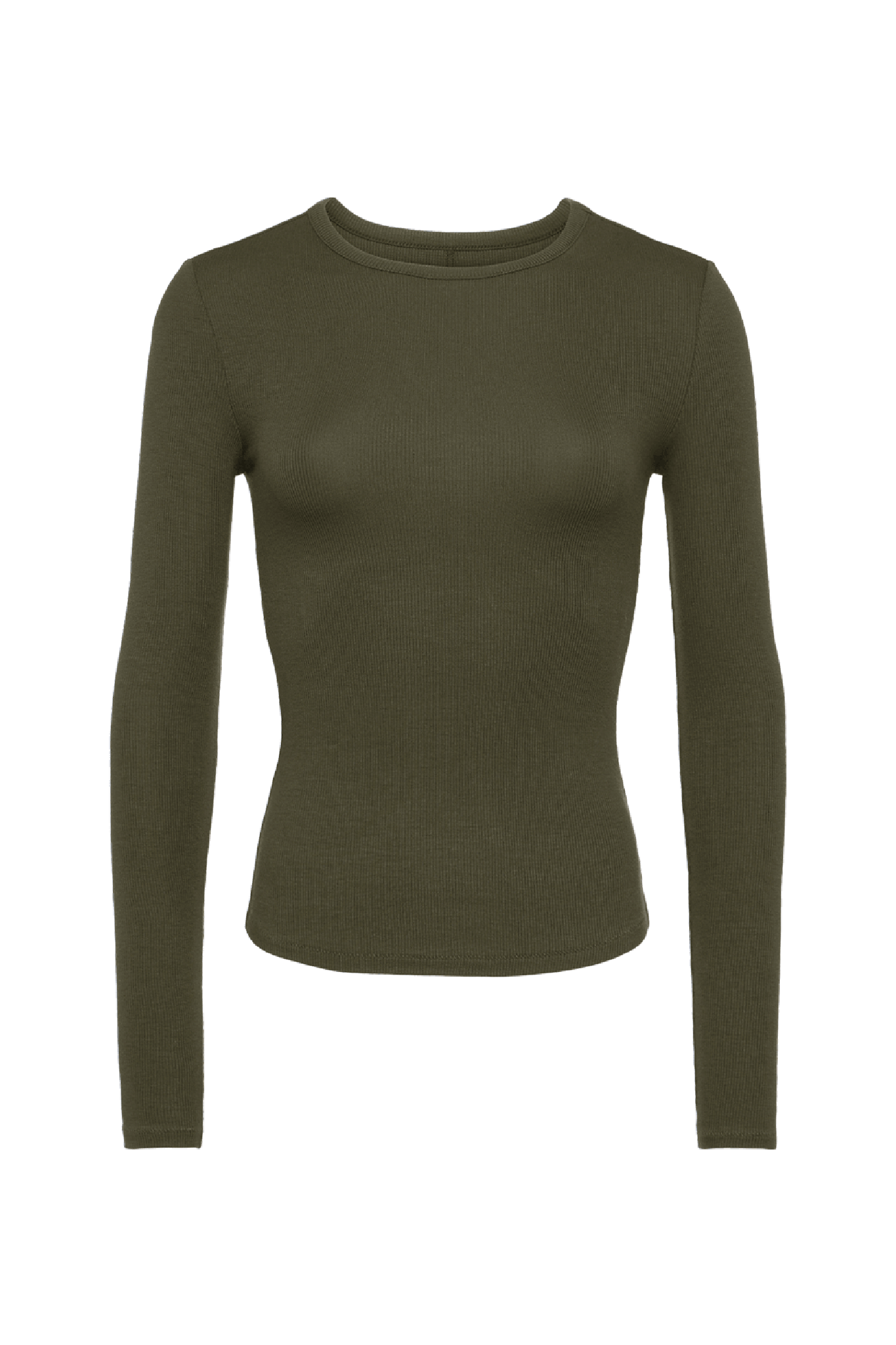 Slinky Rib Long Sleeve Shirt | Darkest Olive
