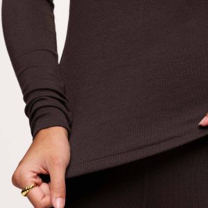 Slinky Rib Long Sleeve Shirt | Espresso