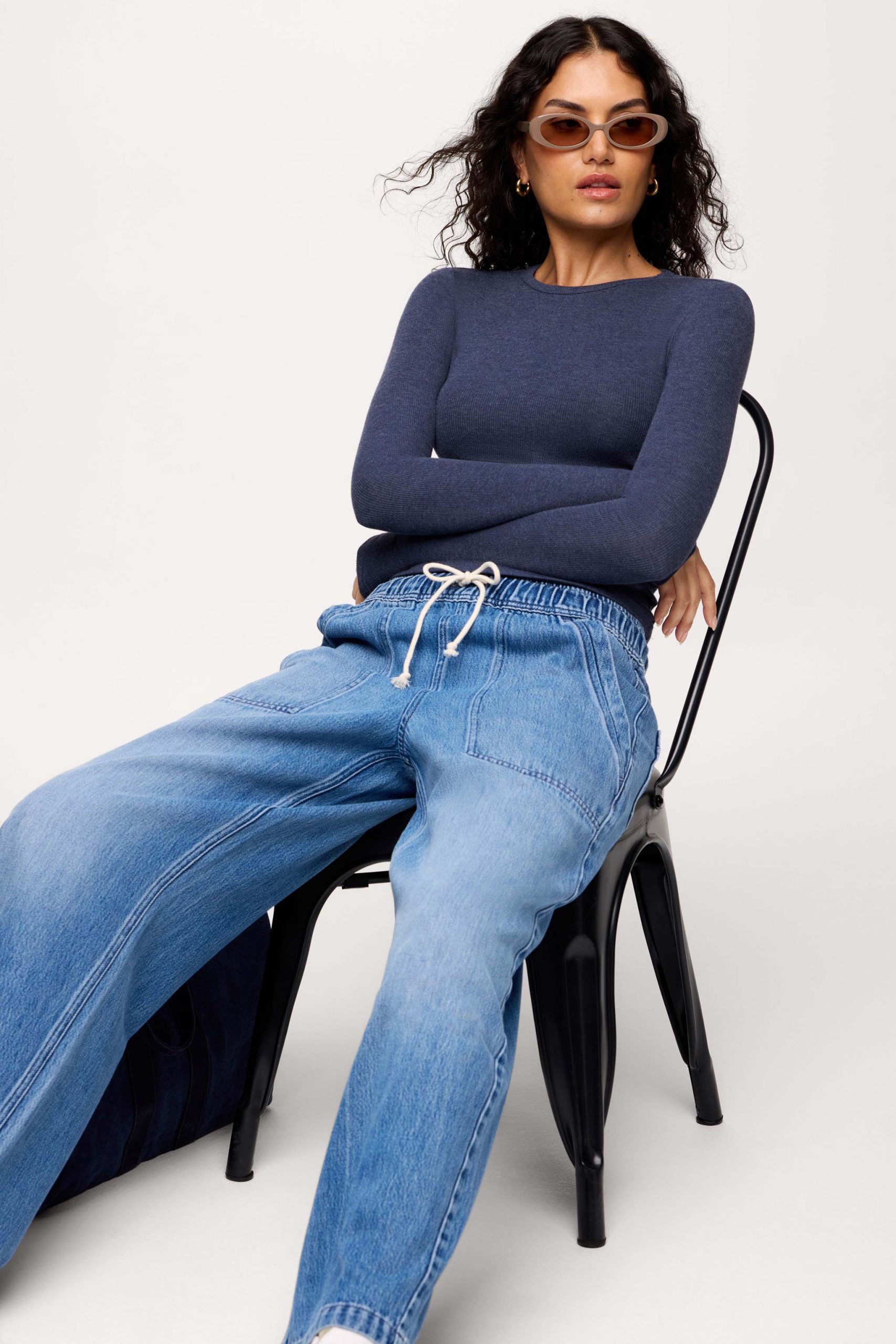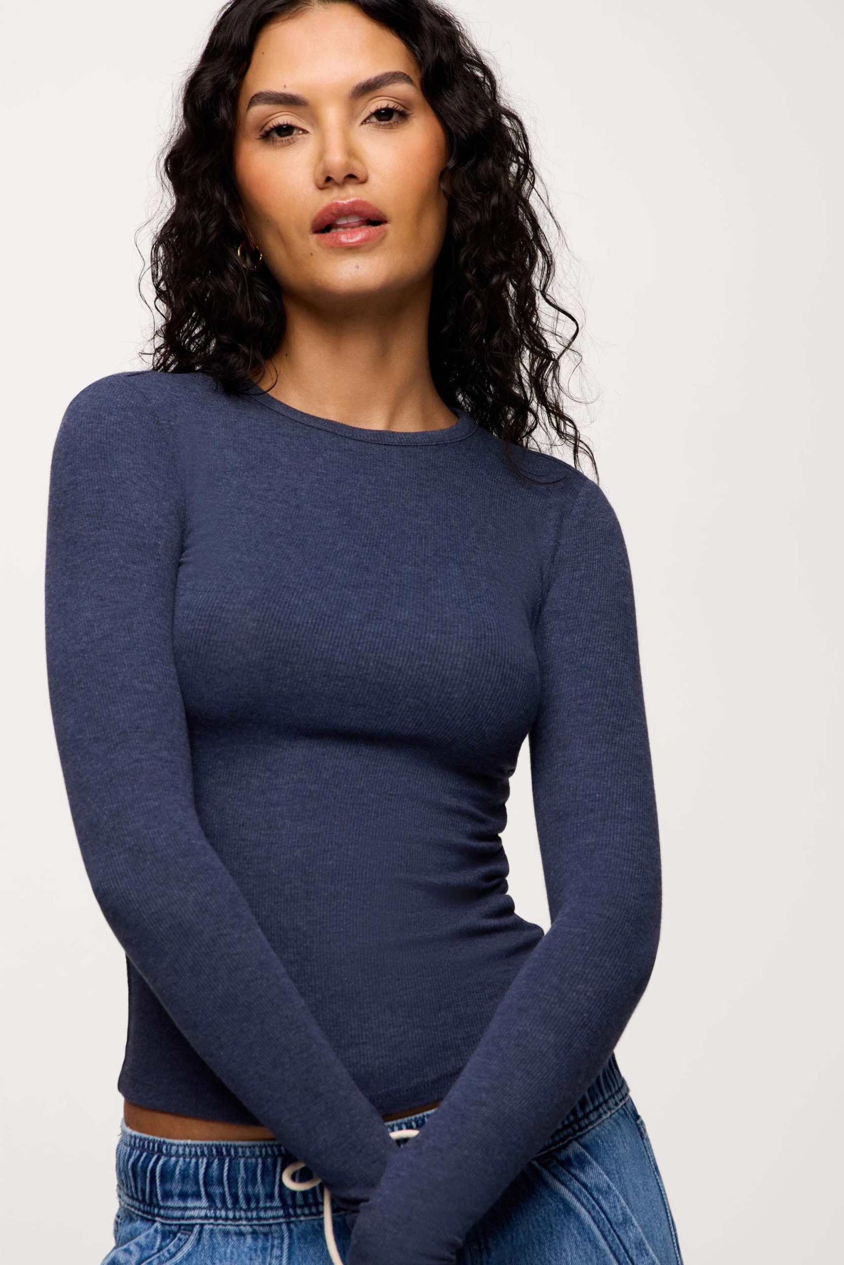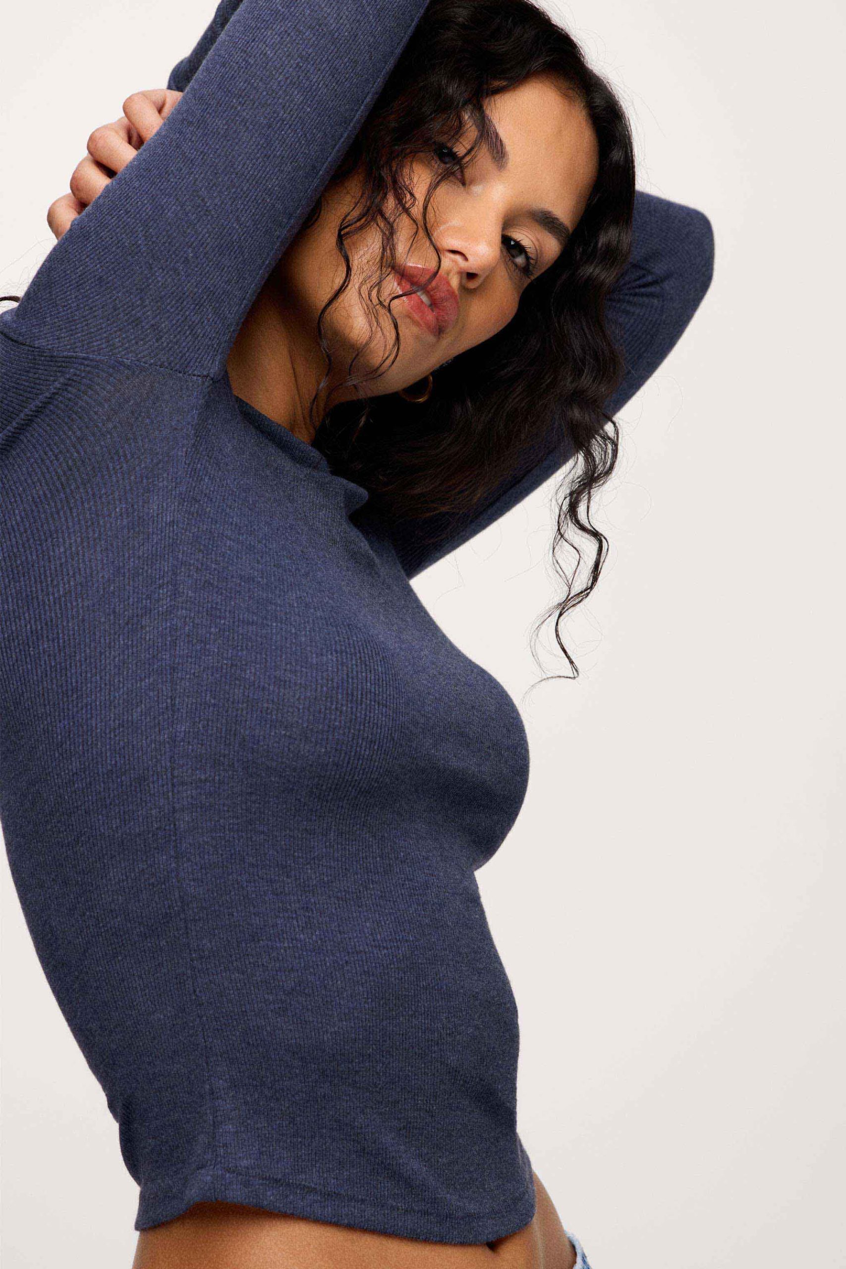 Categories: All Products, Best Sellers, Heather Navy, Instock, long sleeves, Navy, Shop All, Slinky Rib, tees, Tops, Women's