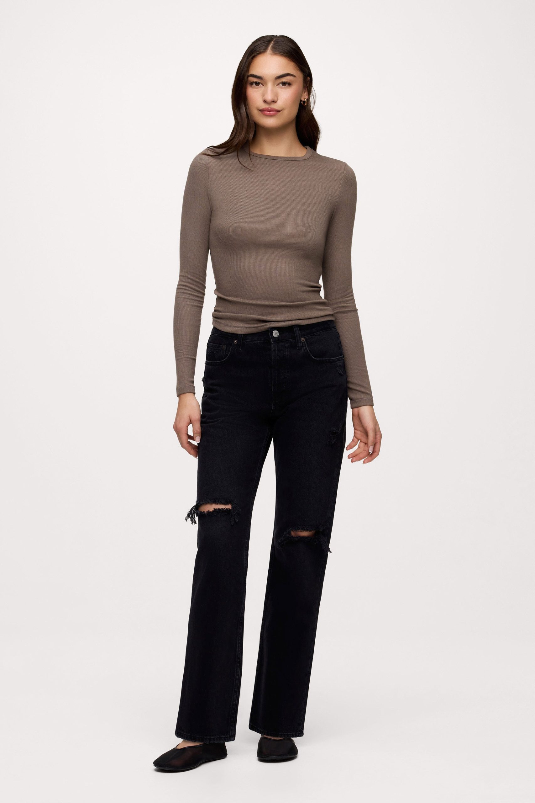 Slinky Rib Long Sleeve Shirt | Mocha