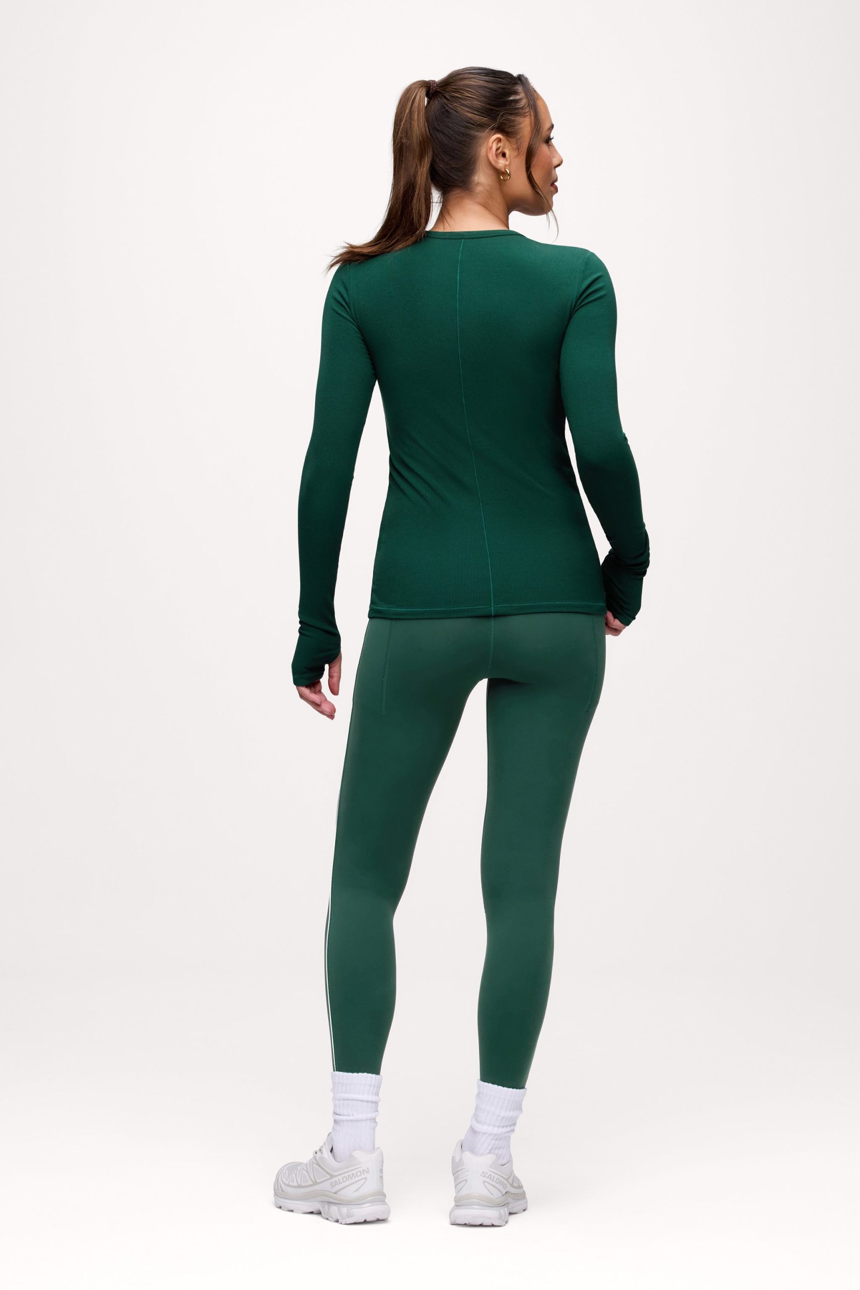 Built for workouts, warmups, and real life. Our Sporty Rib fabric delivers a buttery soft and supportive stretch, so it hugs without feeling tight. The clean crew neckline and streamlined fit create an easy, polished look, while thumbholes keep sleeves comfortably in place through high-energy days.
