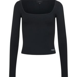 Sporty Rib Portrait Long Sleeve Top | Black