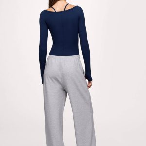 Sporty Rib Portrait Long Sleeve Top | Navy