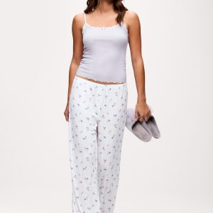 Relax in style with the Sweetheart Pajama Cami, crafted from cloud-like ribbed knit that drapes lightly against the skin. Delicate lace adds a flirty, feminine touch without feeling fussy. Adjustable straps and a small rose detail at the front give it a sweet, girly finish.