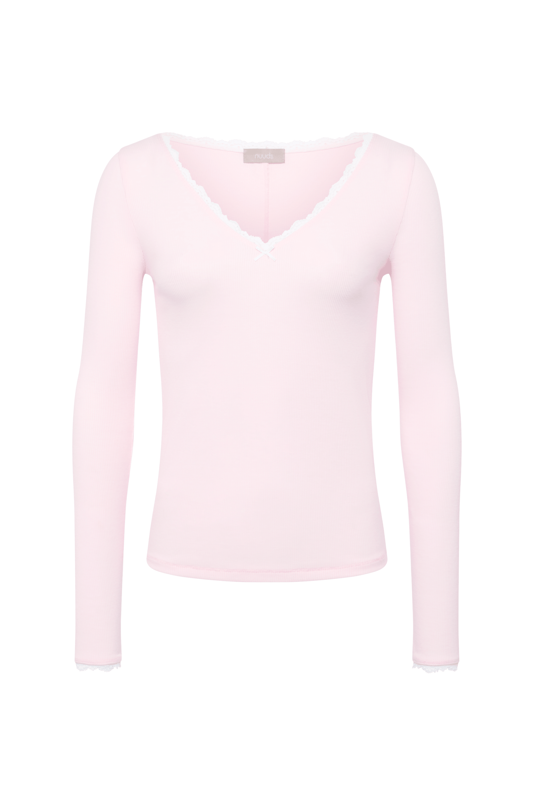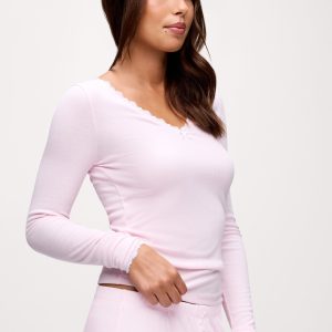 Your favorite sleep top, with a softer, more romantic feel. This ribbed long sleeve is light and stretchy, with delicate lace details and a sweet bow to add a feminine touch. Designed to skim the body just right, it pairs perfectly with the Sweetheart Pajama Pant for a polished, cozy look that feels just as good as it looks.