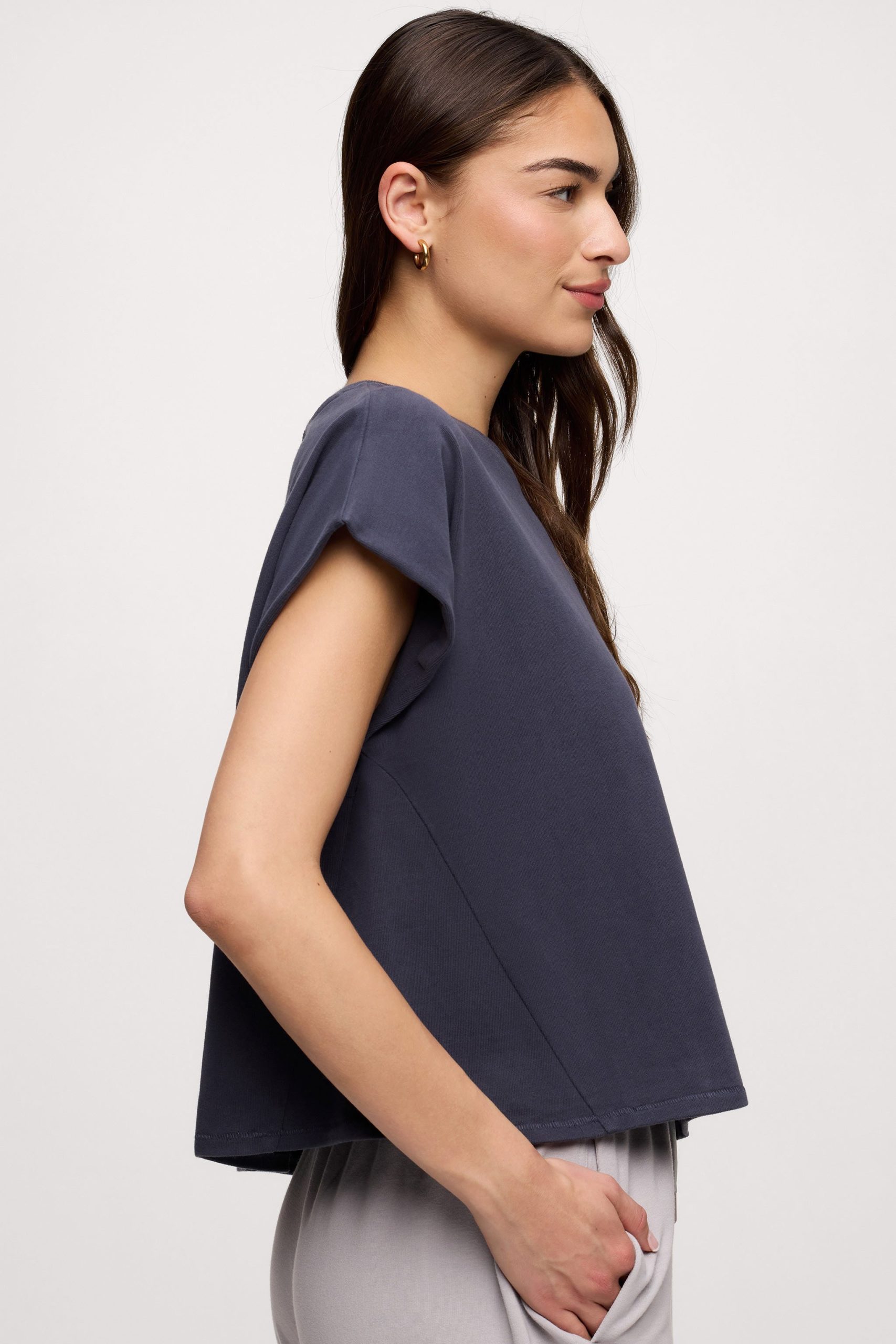 Designed for effortless movement and everyday comfort, the Swing Muscle Tee brings a fresh, modern twist to a classic sleeveless silhouette. Made from soft jersey knit fabric, this muscle tee drapes beautifully with a relaxed, swing shape that flatters without clinging. Subtle side panels add breathability and easy mobility, making it perfect for errands, casual days, or layering under your favorite essentials. Lightweight, comfortable, and endlessly wearable — it’s the elevated basic you’ll reach for again and again.