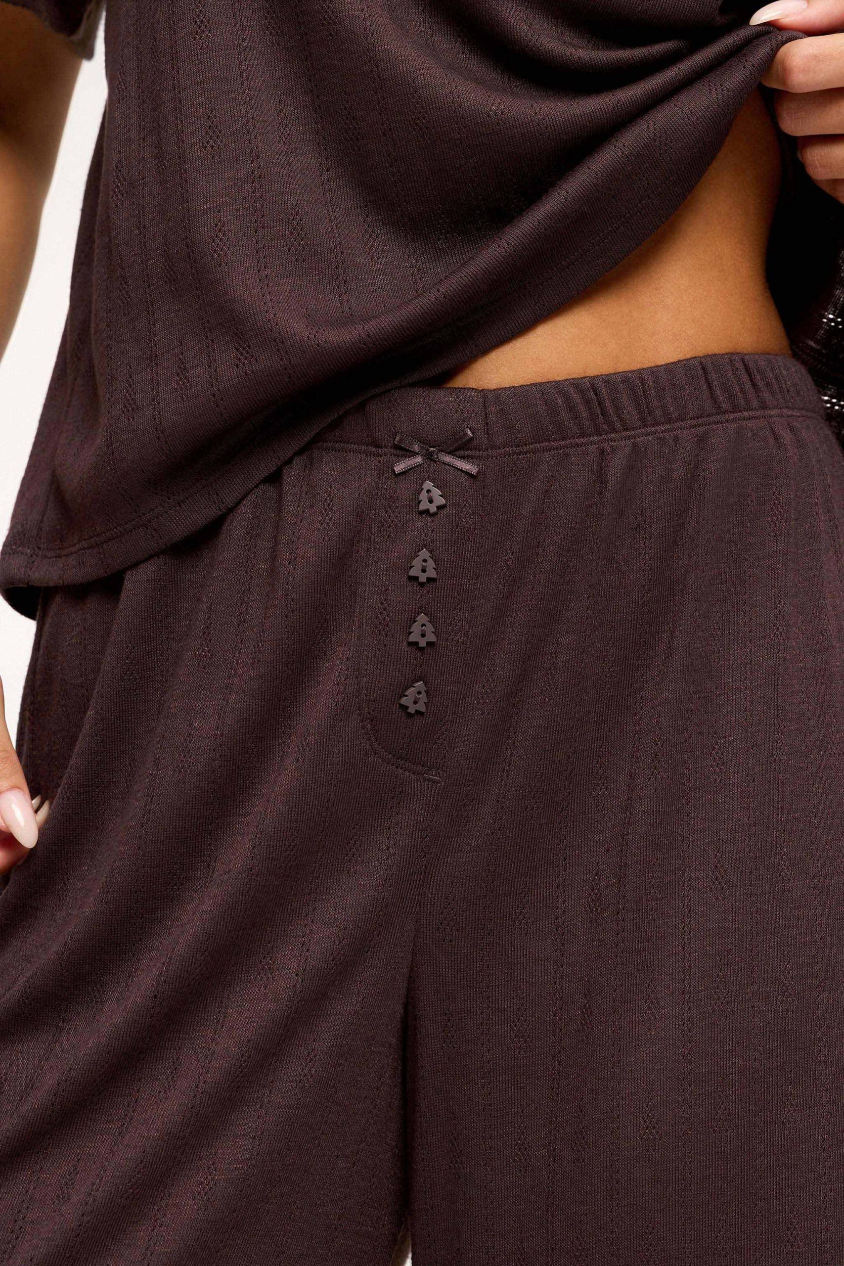 Tree Pointelle Pajama Set with Sleep Mask | Espresso