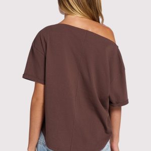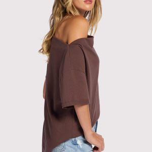 Vintage Cotton Off The Shoulder T-Shirt | Coffee